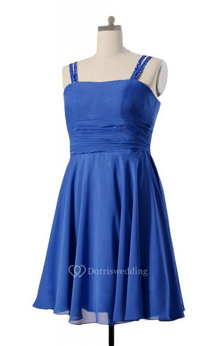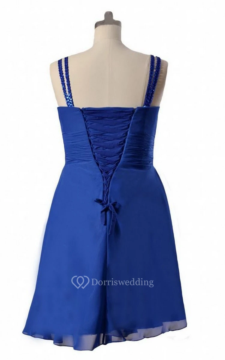 Beaded Spaghetti Straps Short Dress With Lace-up Back