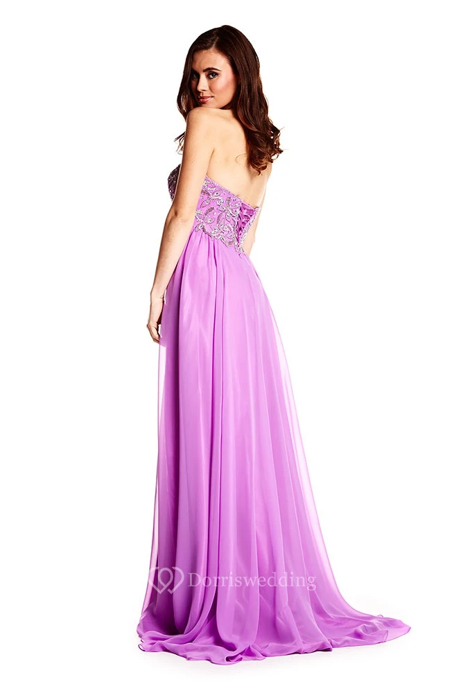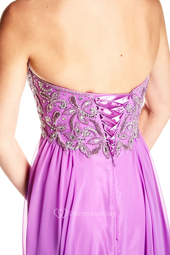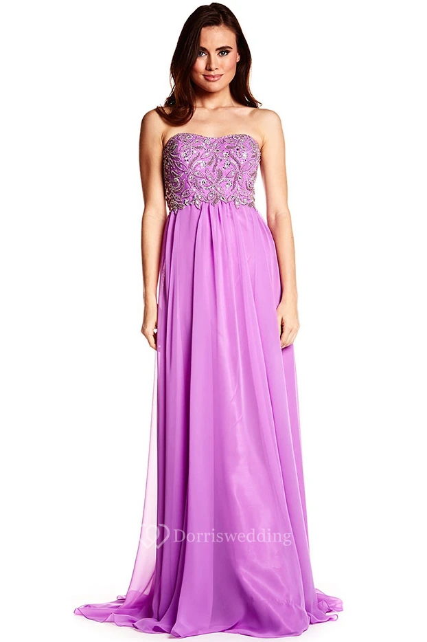 Beaded Strapless Chiffon Prom Dress With Brush Train