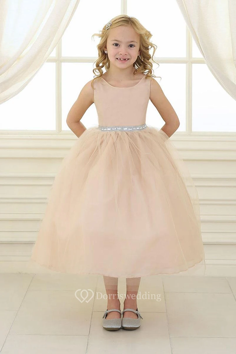 Beaded Tulle&Satin Flower Girl Dress