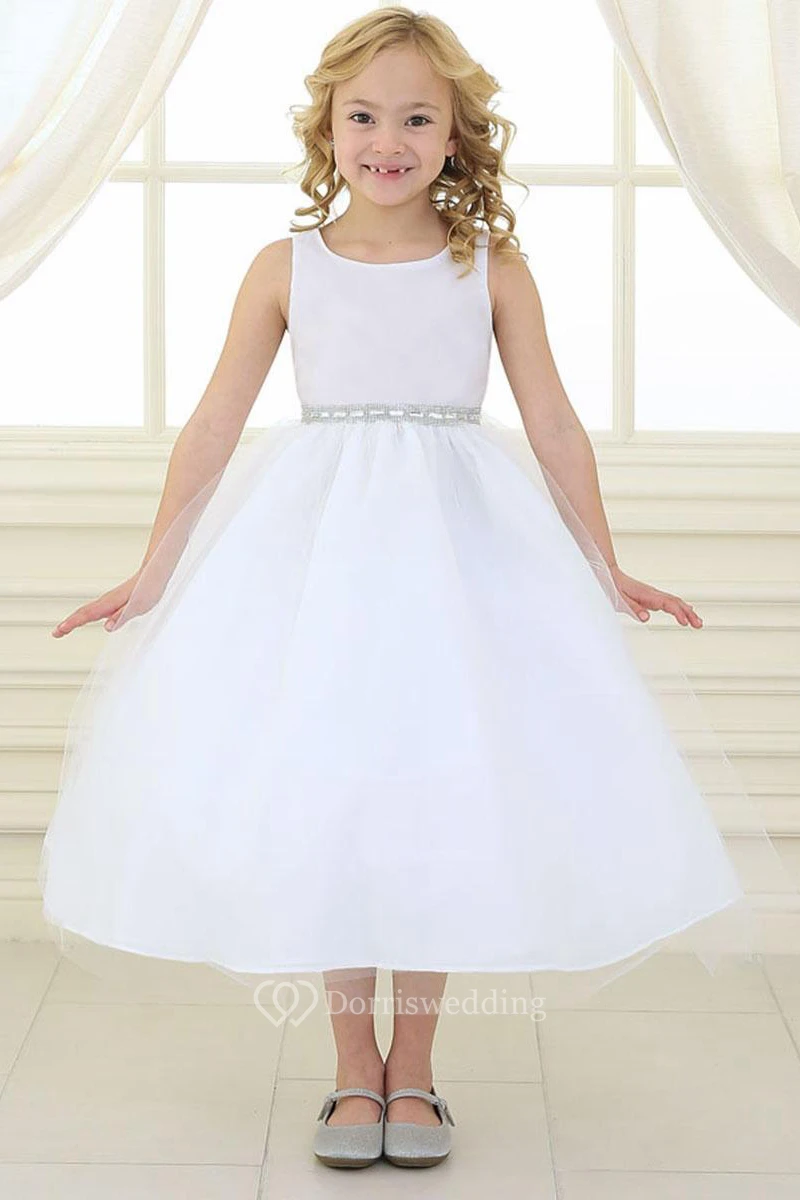Beaded Tulle&Satin Flower Girl Dress