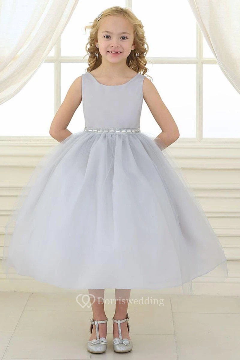 Beaded Tulle&Satin Flower Girl Dress