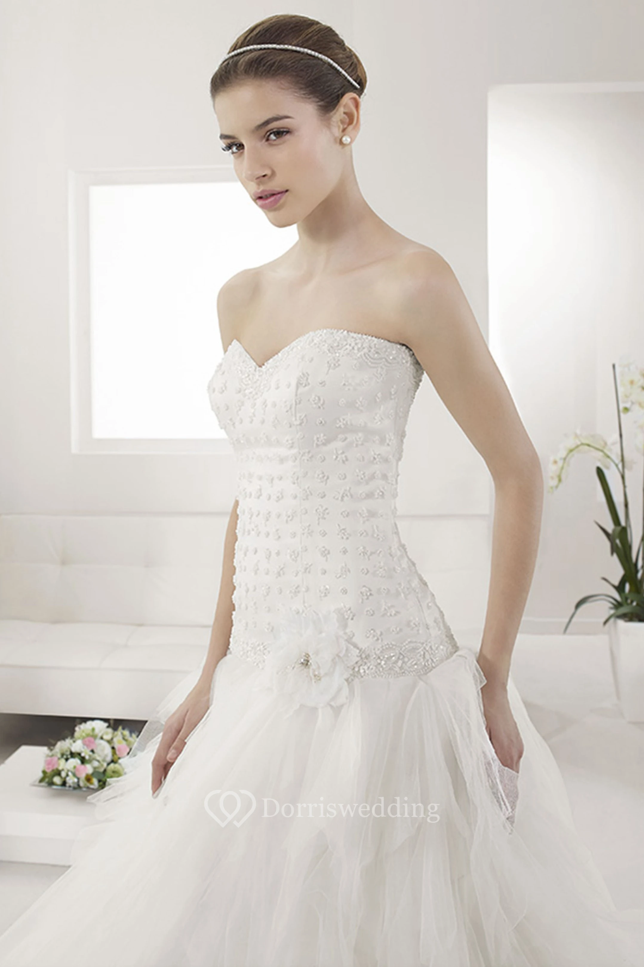 Beading Sweetheart Neck Drop Waist Bridal Gown With Tiered Tulle Skirt