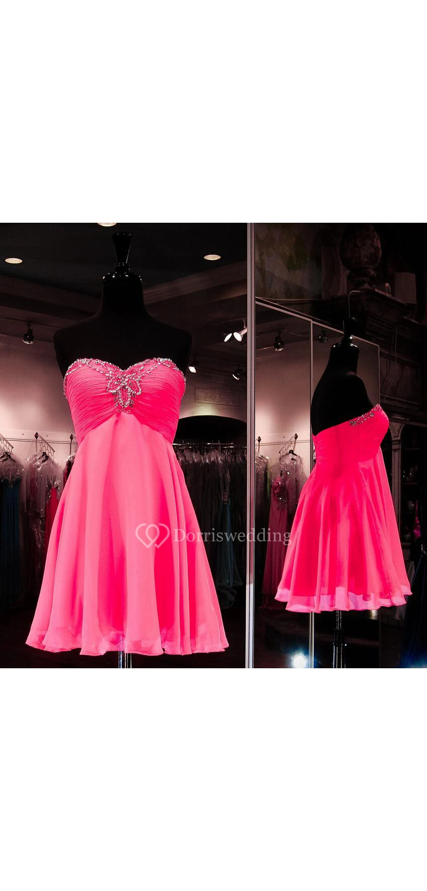 Beading Sweetheart Ruched A-line Knee-length Chiffon Dress