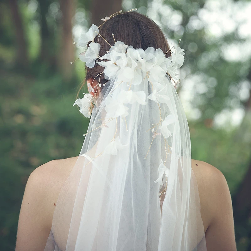 Beautiful Flower Veils with Beaded Rings