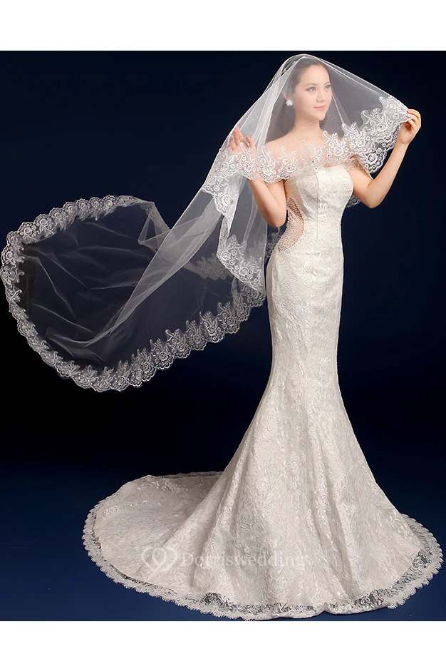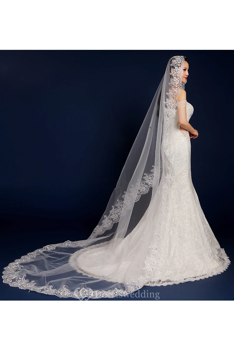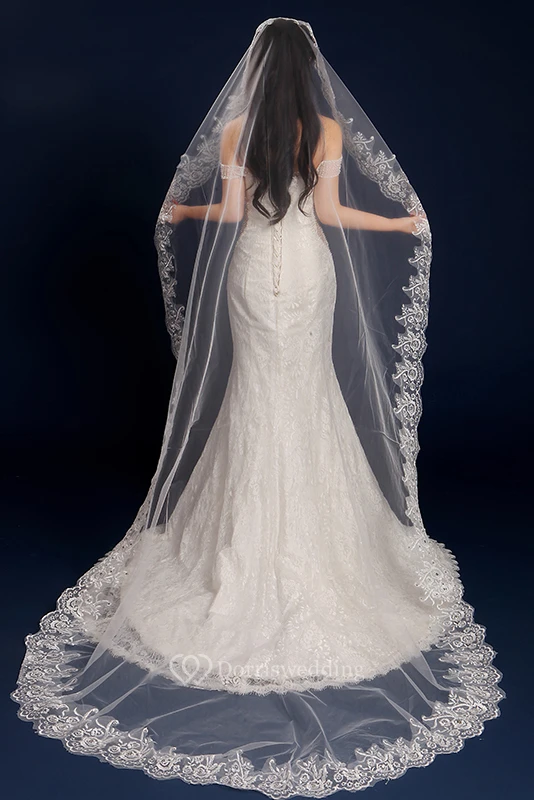 Beautiful Long Tulle Chapel Wedding Veil with Lace Edge