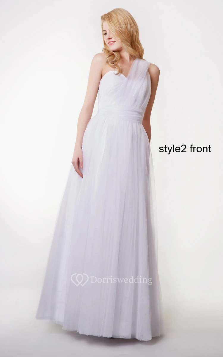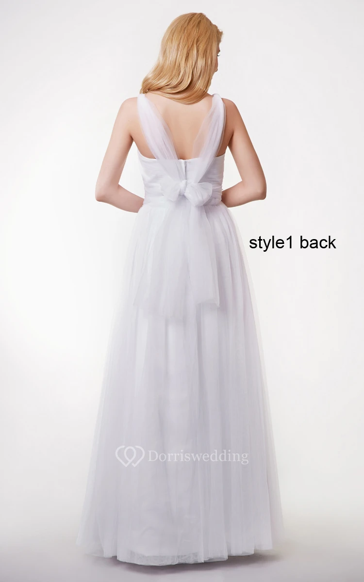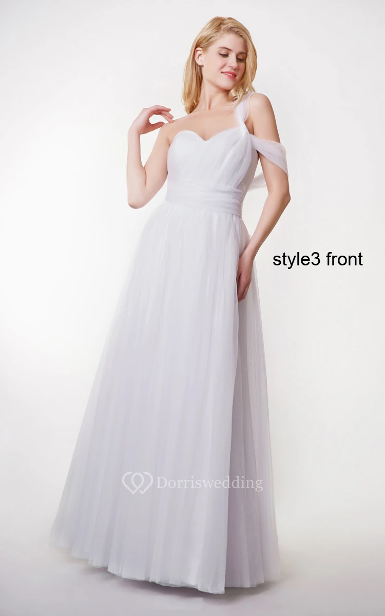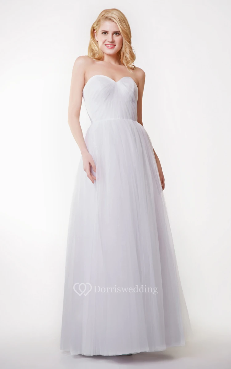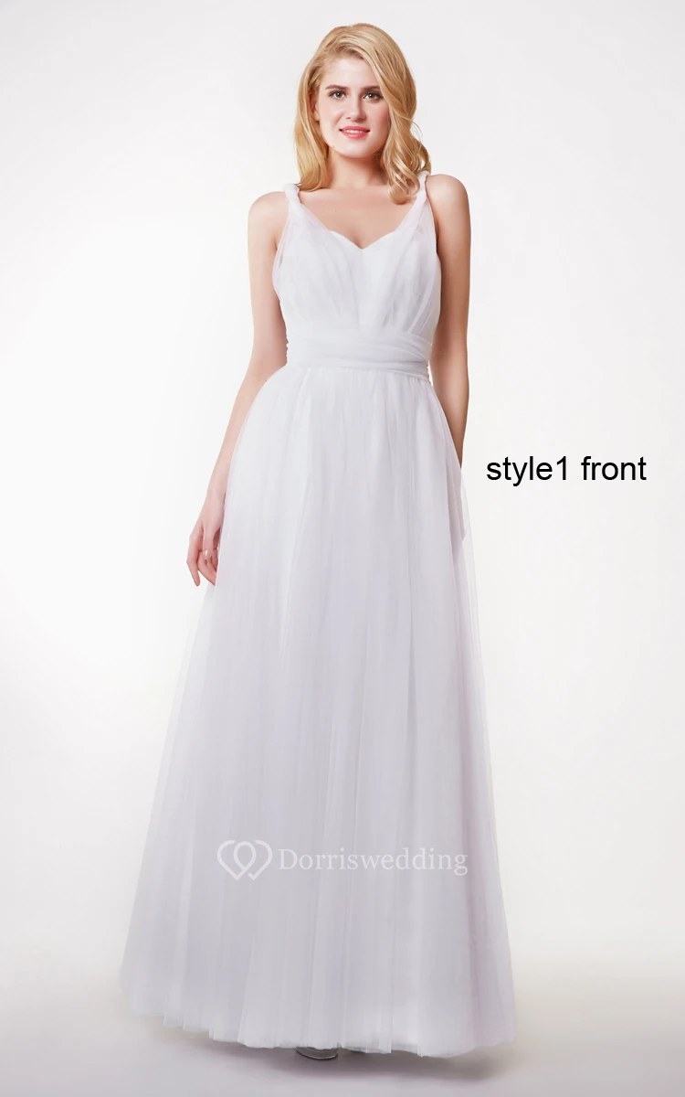 Beautiful Sleeveless A-line Pleated Tulle Gown With Convertible Straps