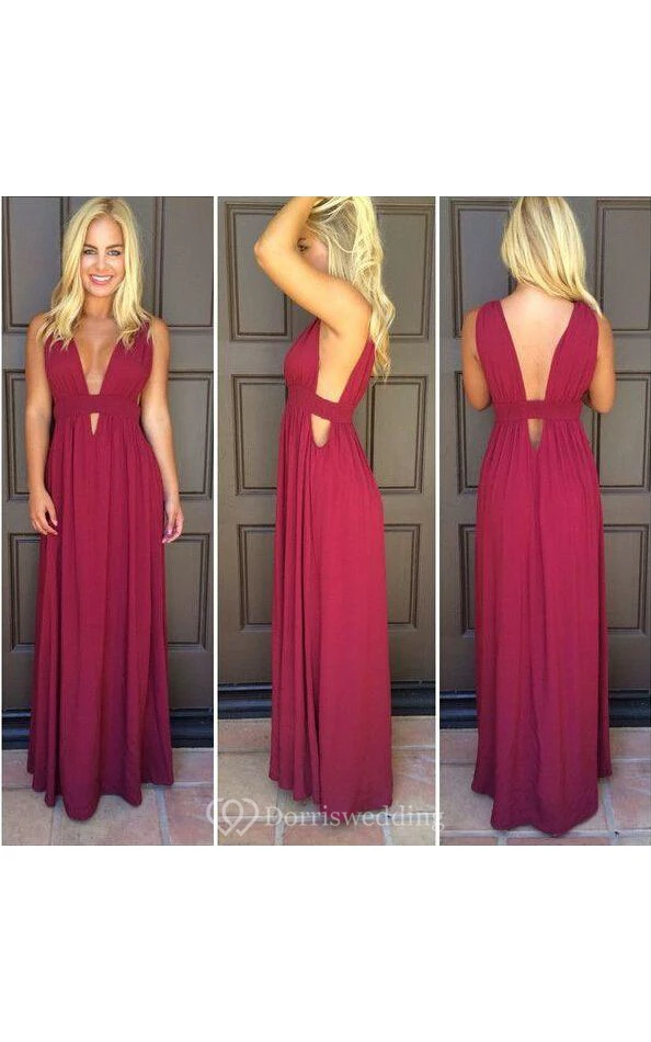 Beautiful Sleeveless Burgundy Prom Dresses Long Chiffon
