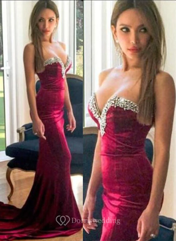 Beautiful Sweetheart Burgundy Evening Dress Mermaid With Beadings