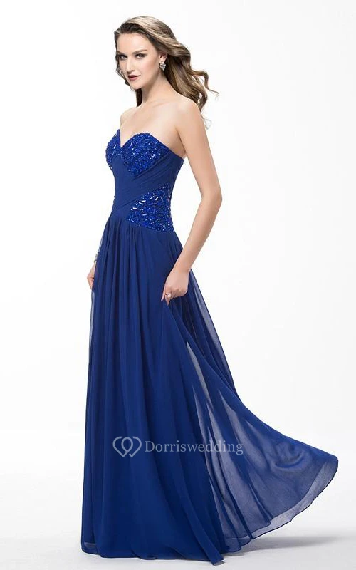 Bespoke A-Line Floor Length Sweetheart Ruffles Prom Dress