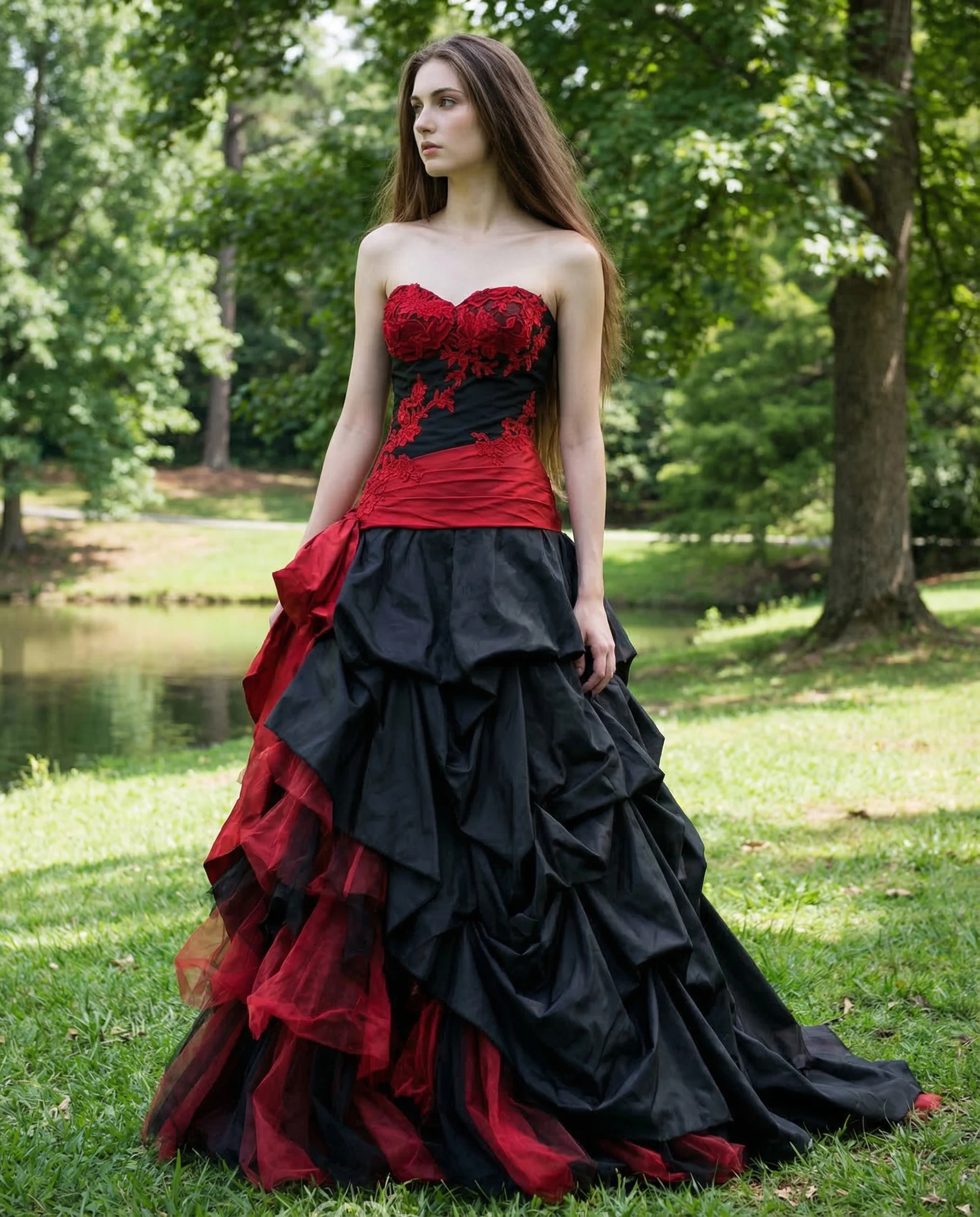 • Embellishments: Appliques, Cascading Ruffles, Ruching, Ruffles