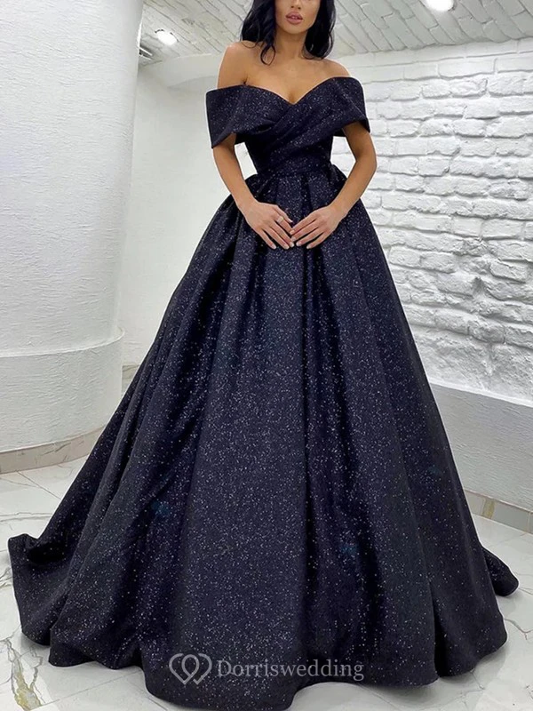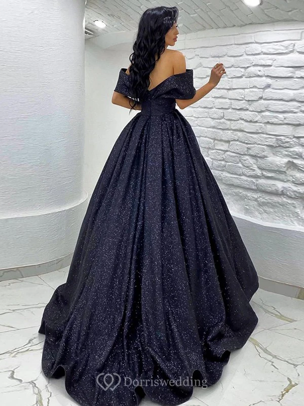Black Off-the-shoulder Sequin A-line Ball Gown Prom Dress