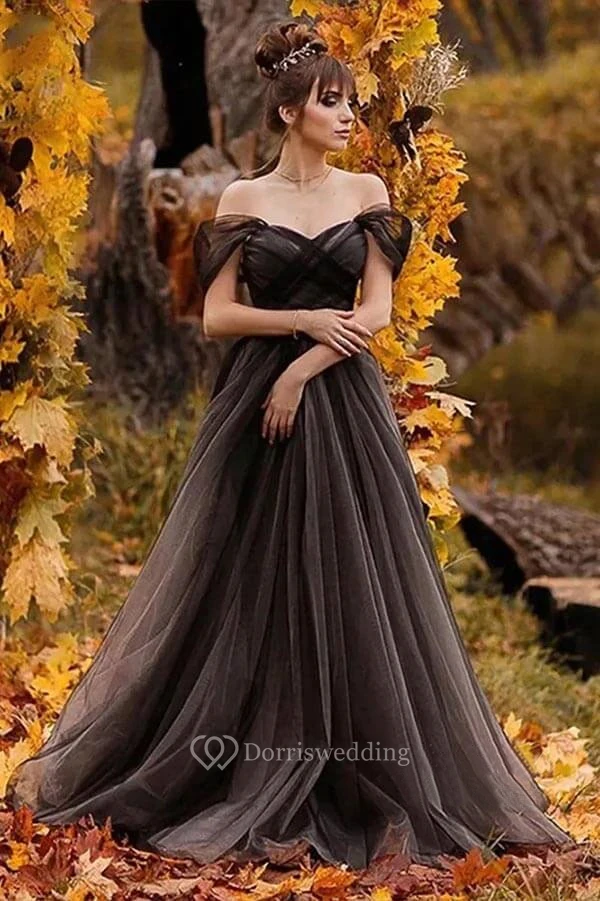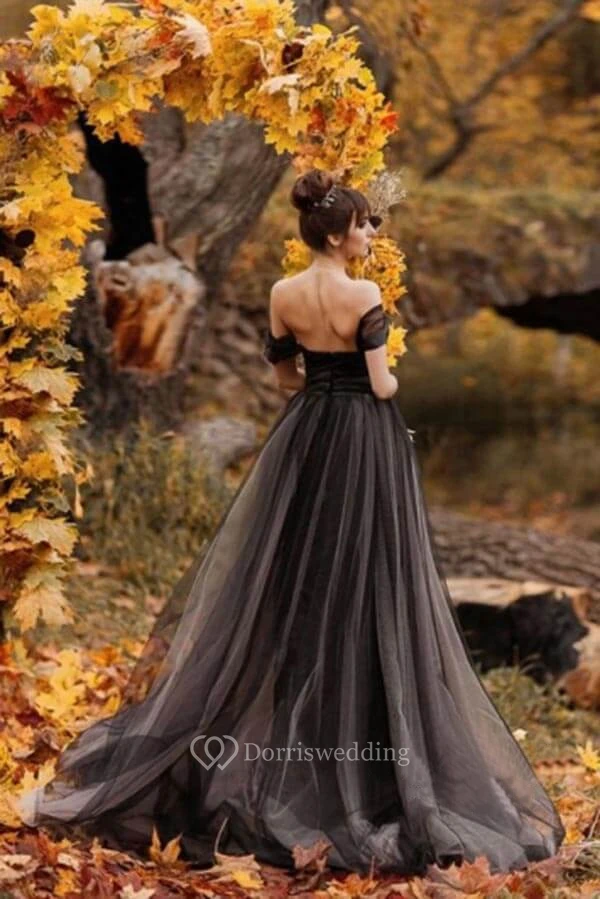 Black Off-the-shoulder Sweetheart Gothic Tulle Criss-cross Dress