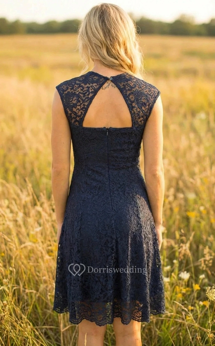 Blue Lace Mini Sheath Bridesmaid Dress