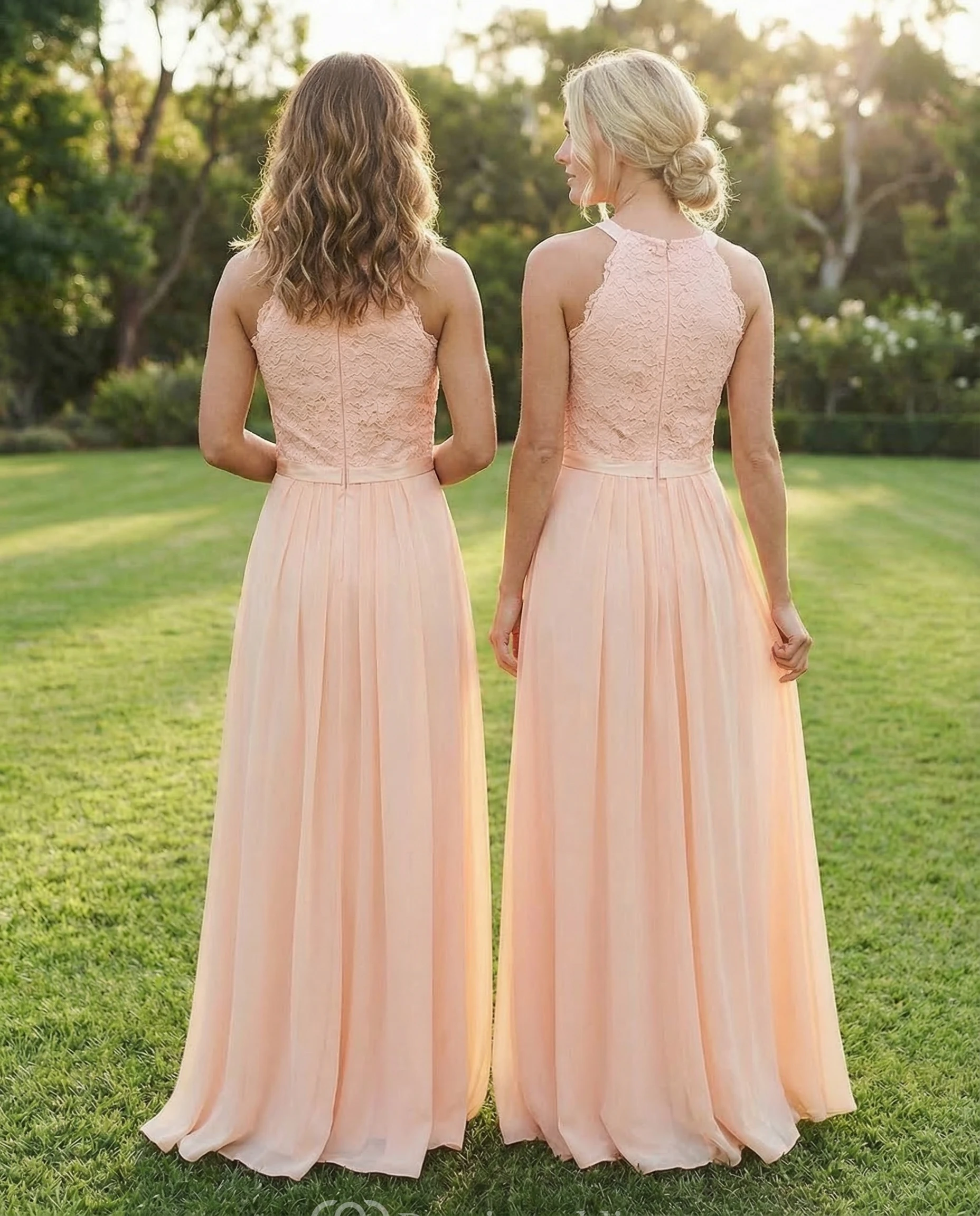 Blush Chiffon Scoop Neck Dress with Ribbon