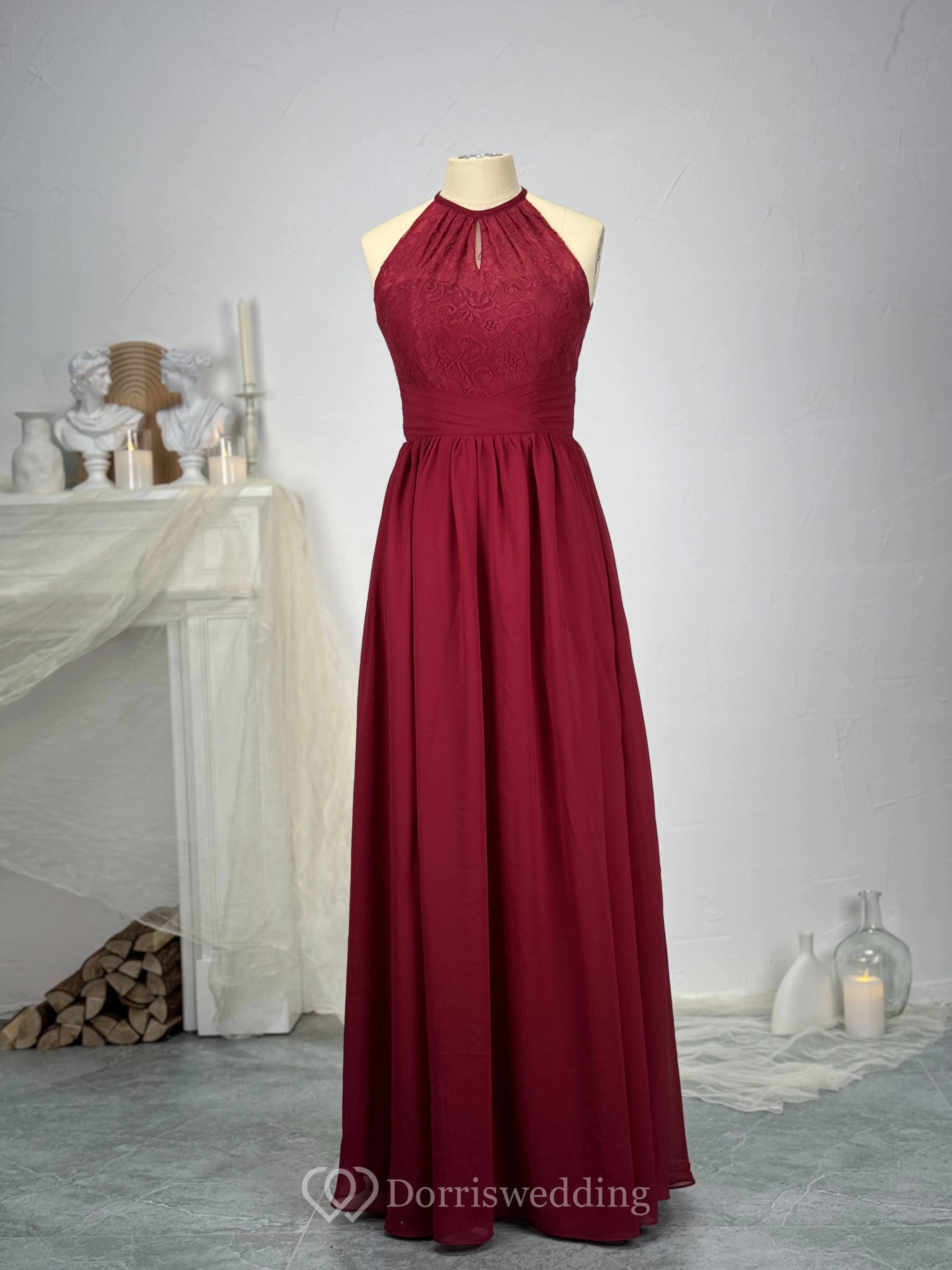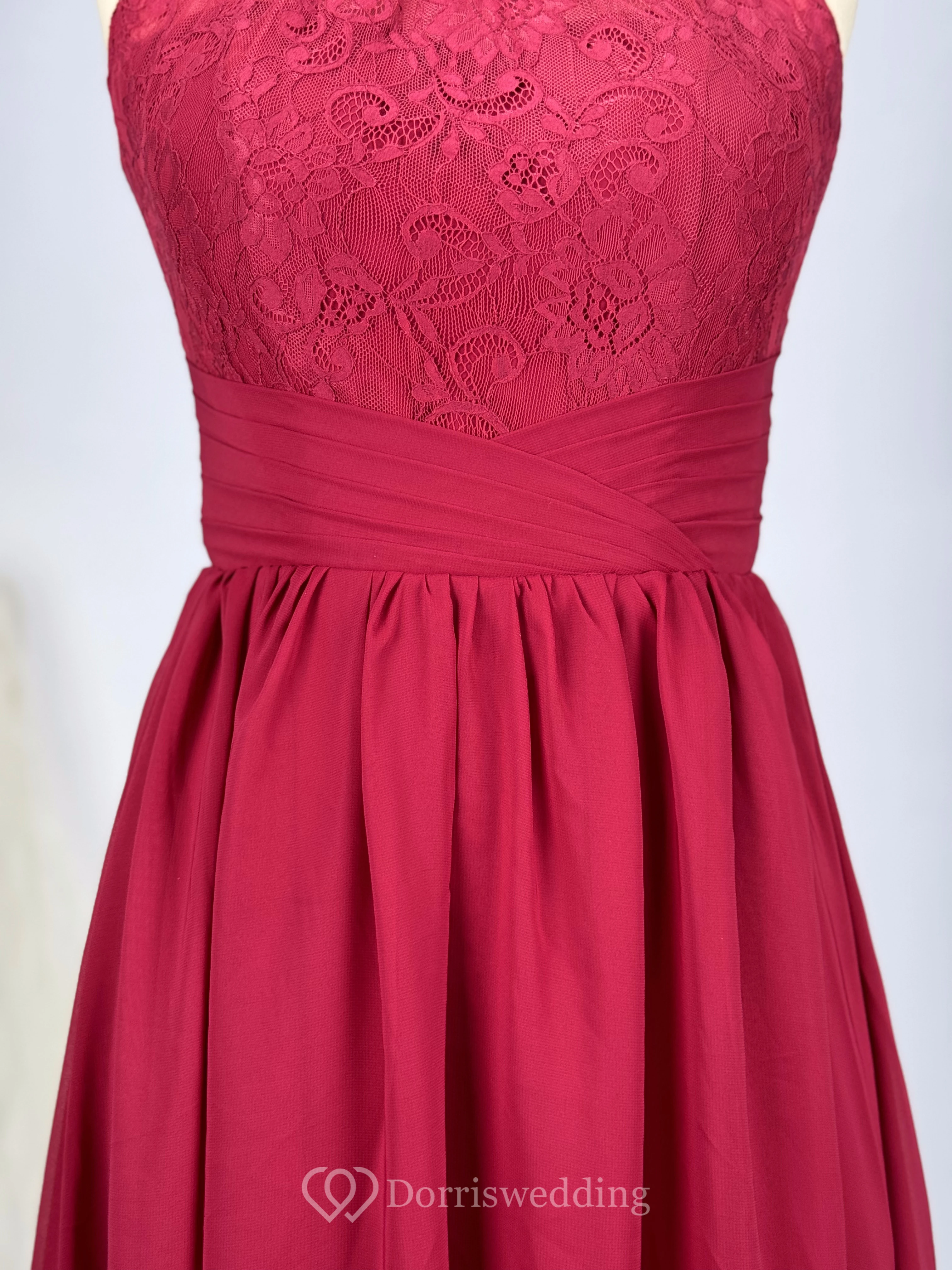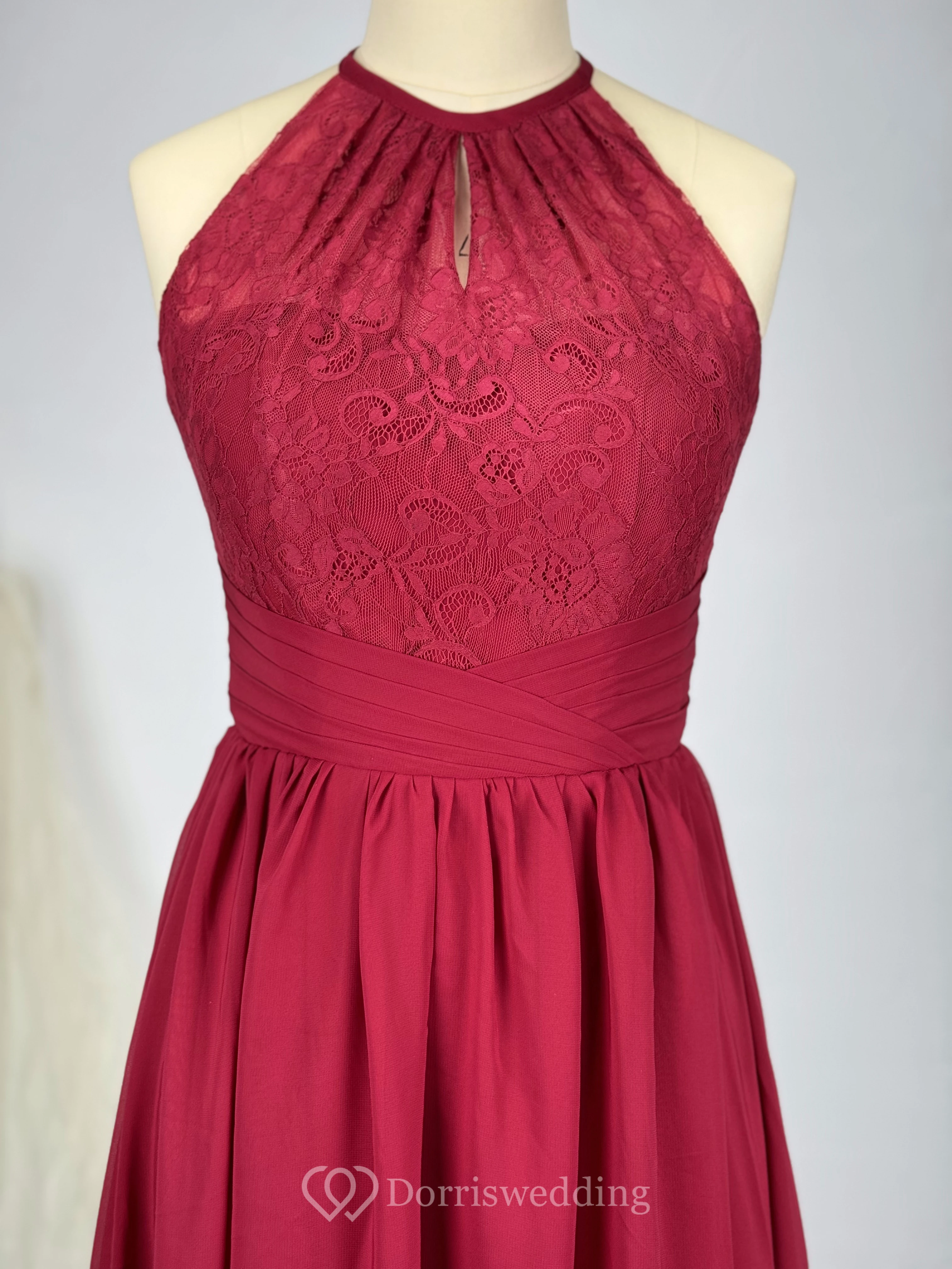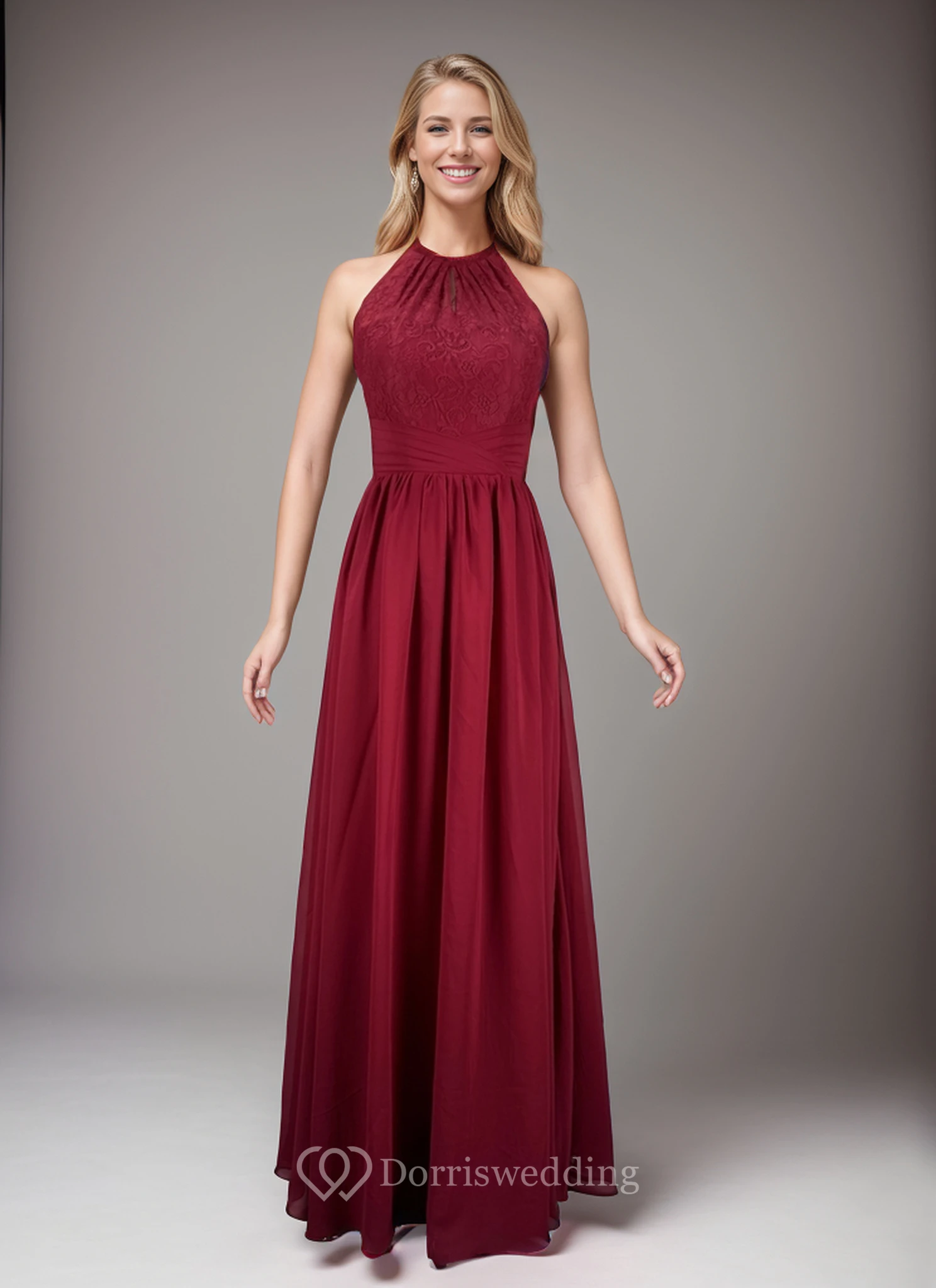 Blush Pink Sleeveless Chiffon Bridesmaid Dress With Lace Detail And Keyhole Back
