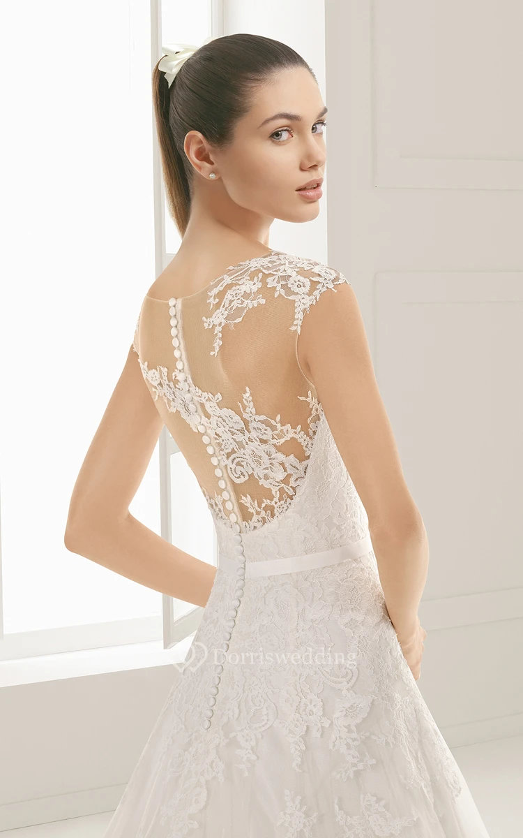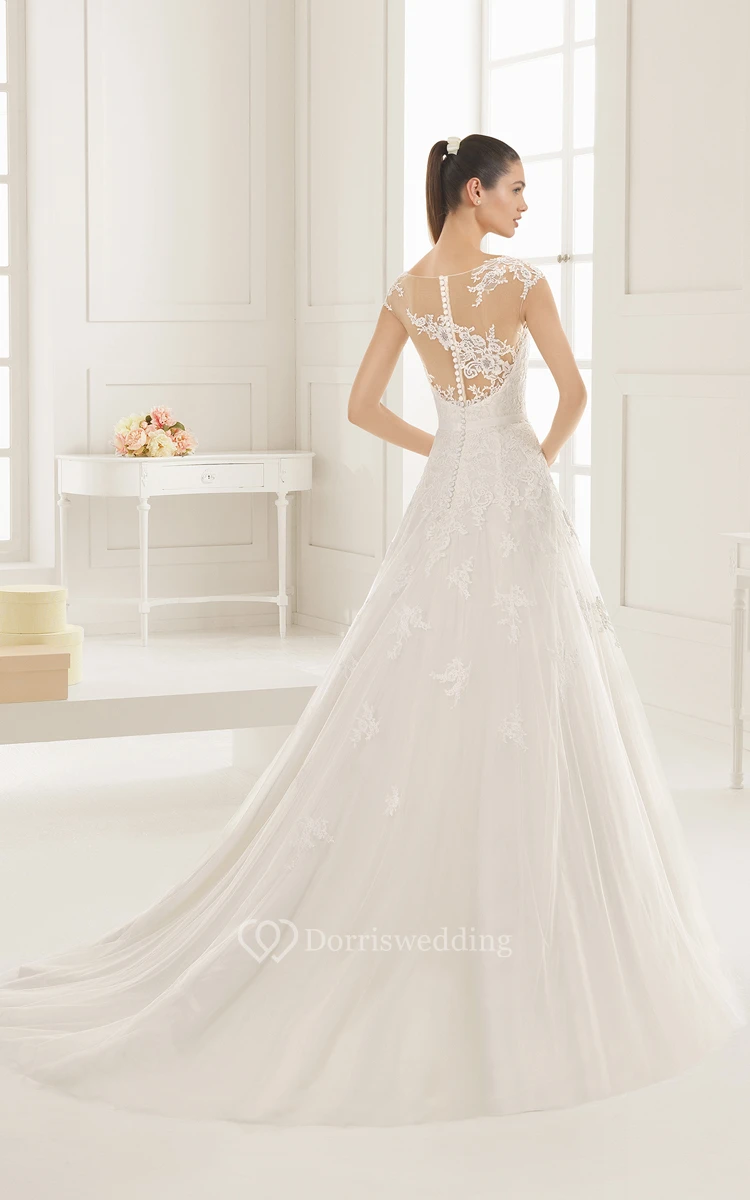 Bodice A-line Dress With Illusion Back And Appliques
