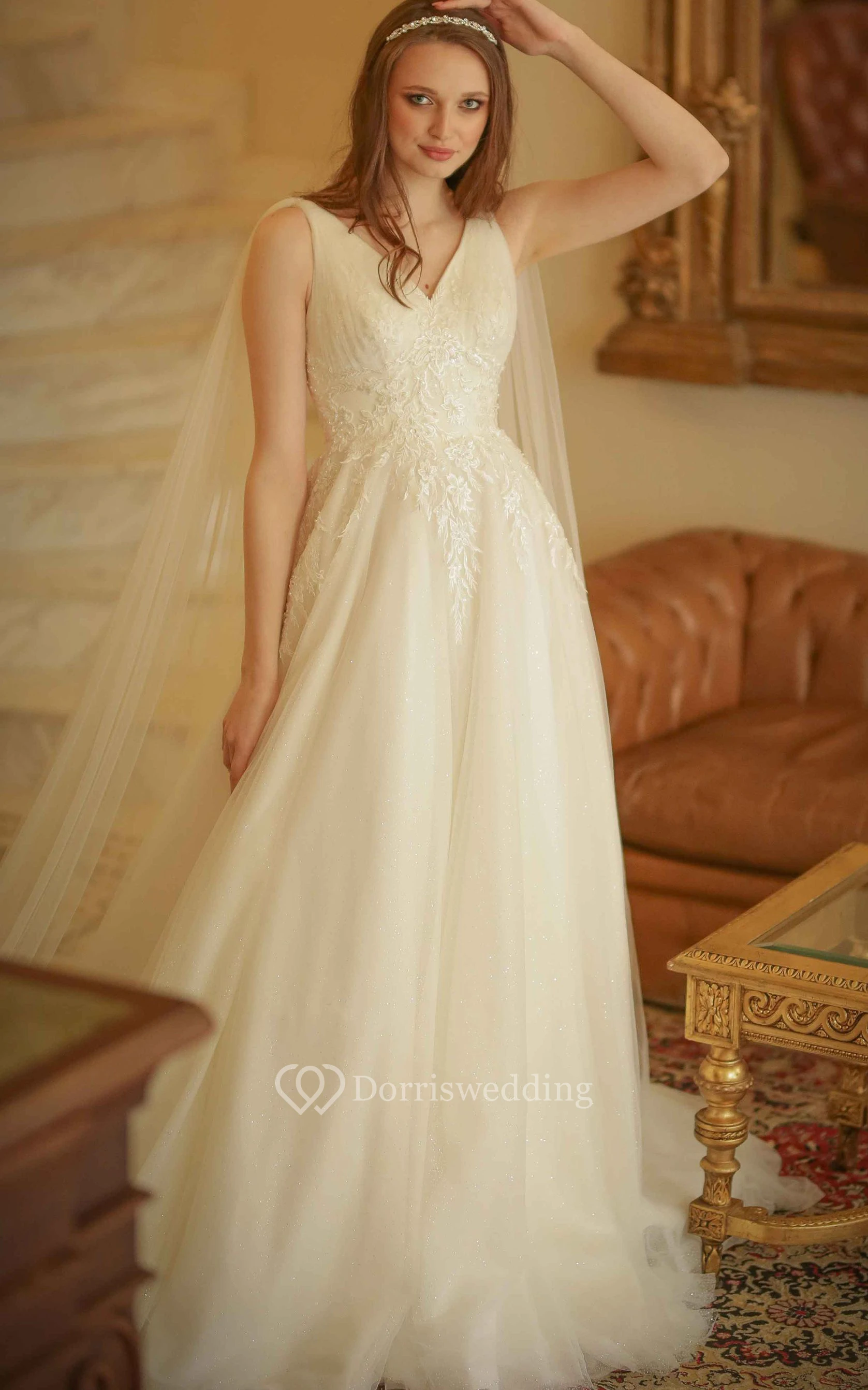 • Hemline/Train: Floor-length, Sweep/Brush Train, Watteau Train