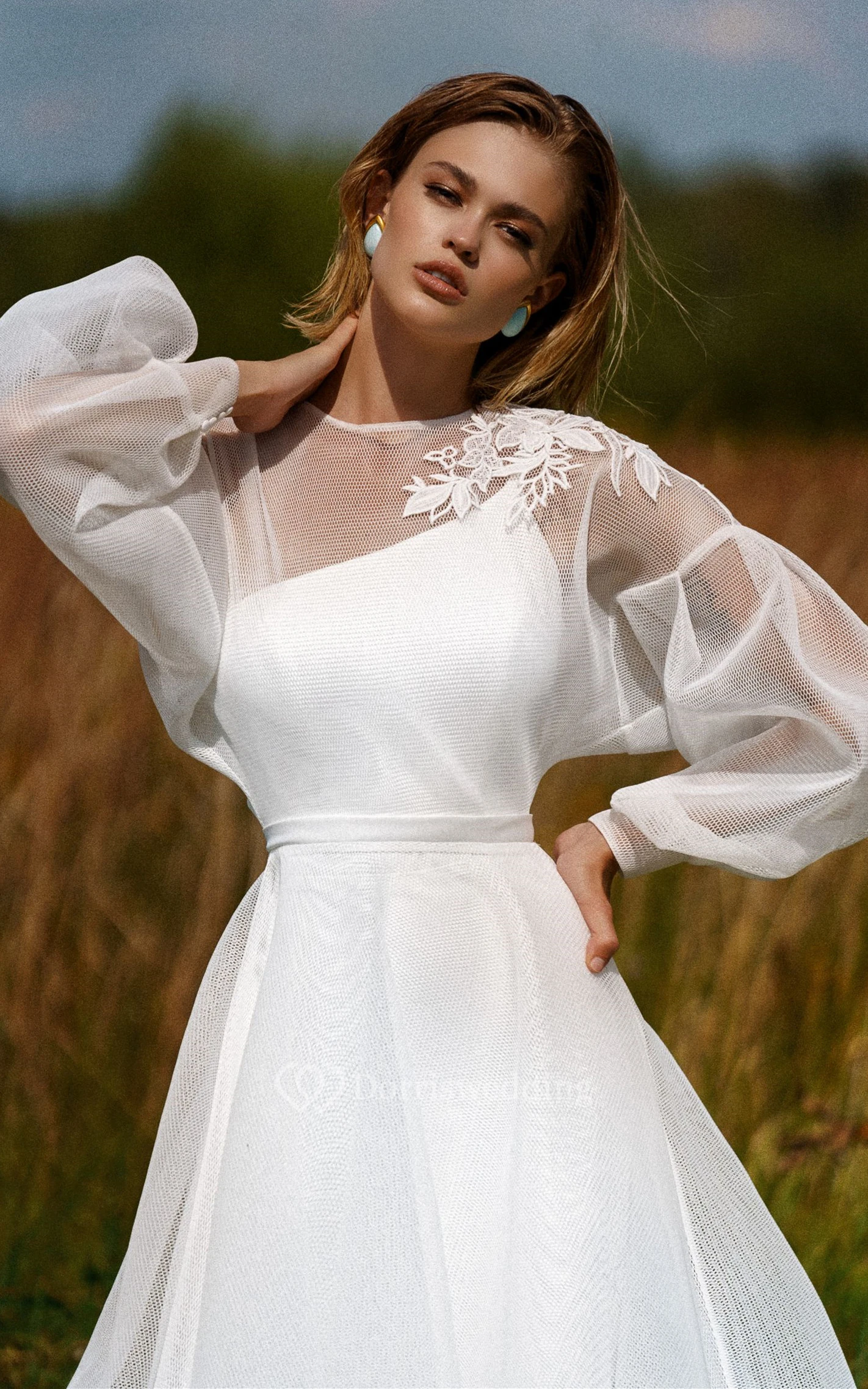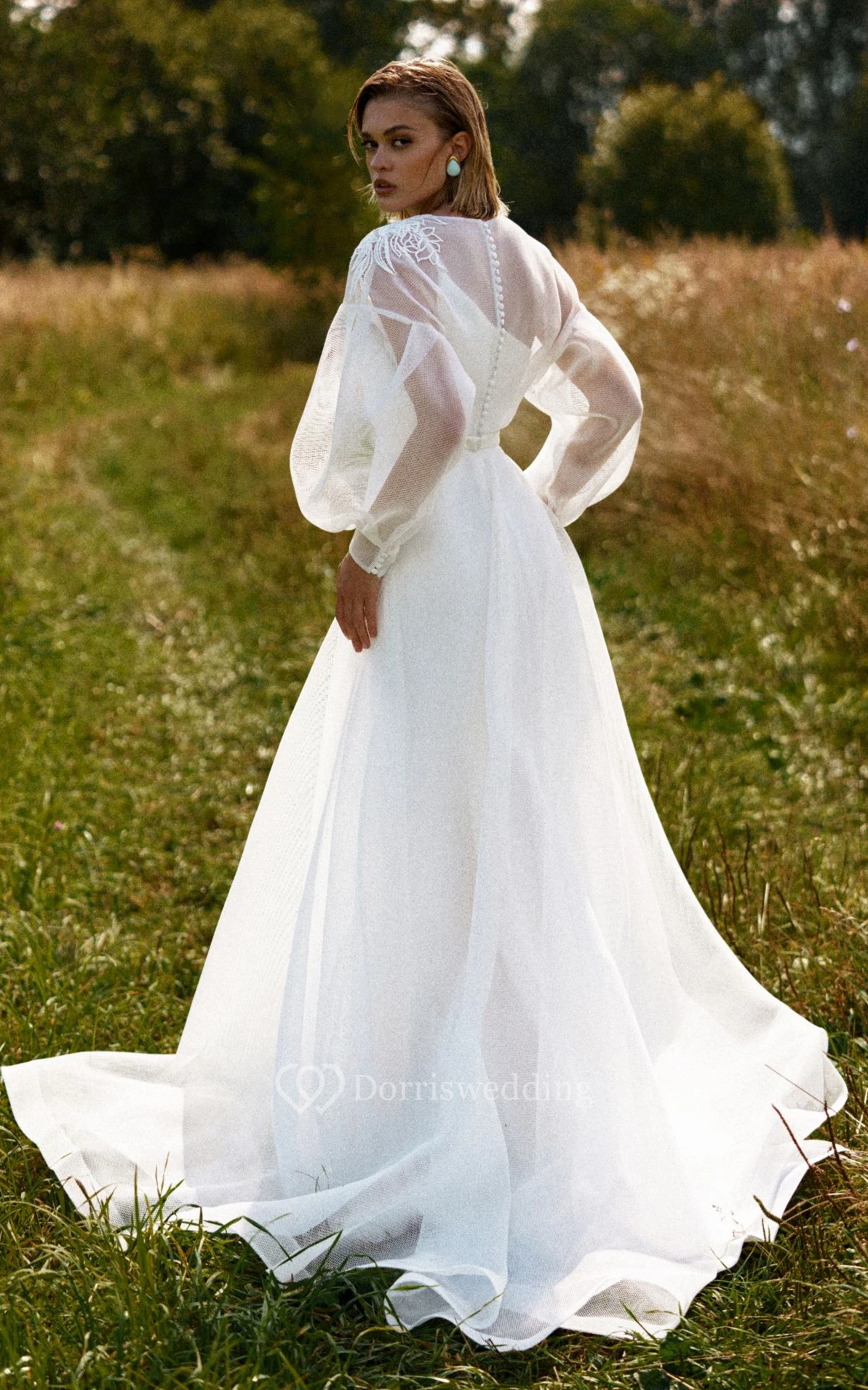 Bohemian 2-in-1 Chiffon and Satin Sweep Train Wedding Dress with Removable Skirt
