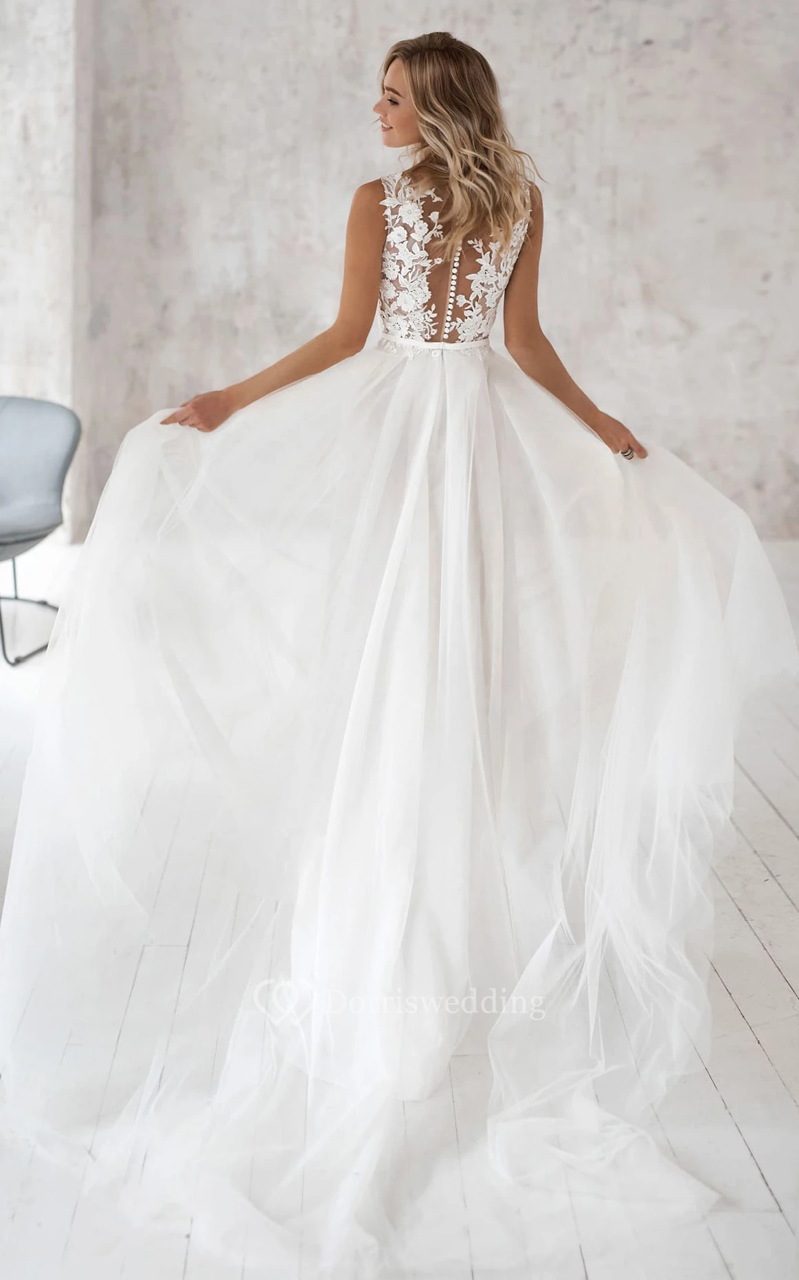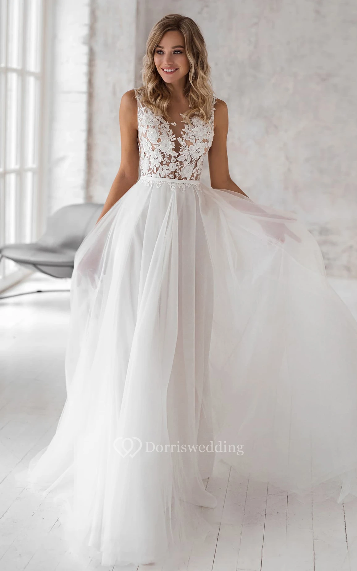 The bodice is designed with a sheer fabric. If you'd prefer more coverage, simply choose our "Modest Look" option at checkout and let us know in the notes.