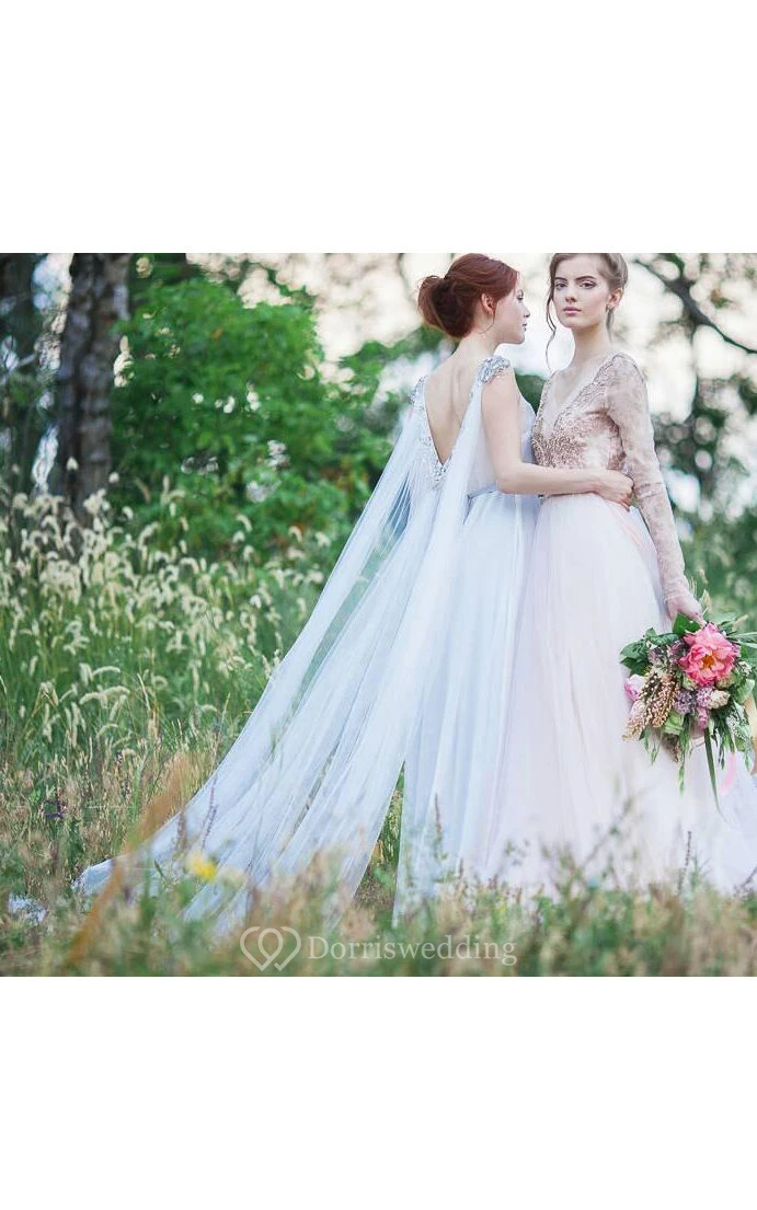 • Hemline/Train: Floor-length, Sweep/Brush Train, Watteau Train