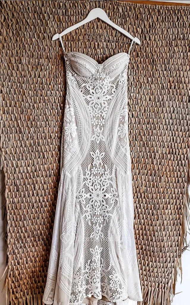 This dress has a satin liner with a romantic lace overlay, seamlessly sewn for a luxurious feel.