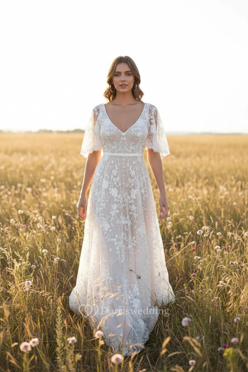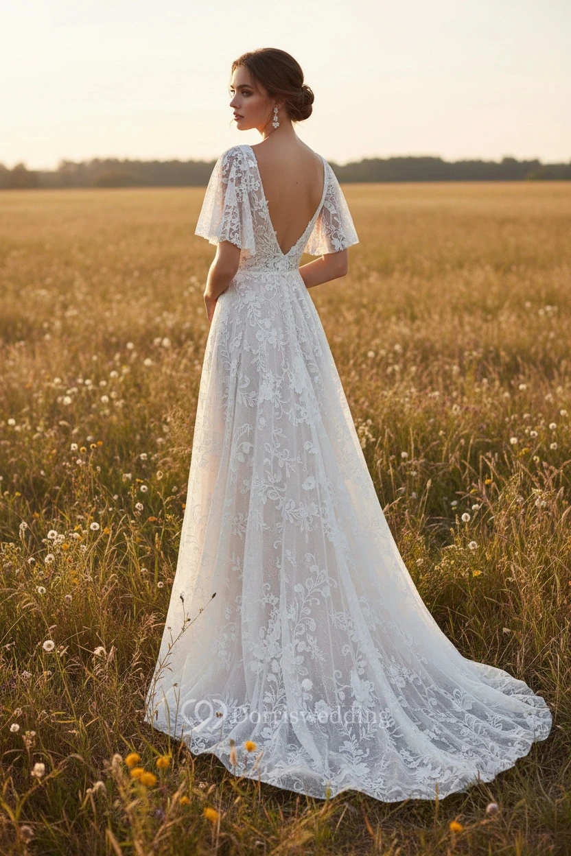The lace detailing makes this wedding dress look so expensive - amazing price!