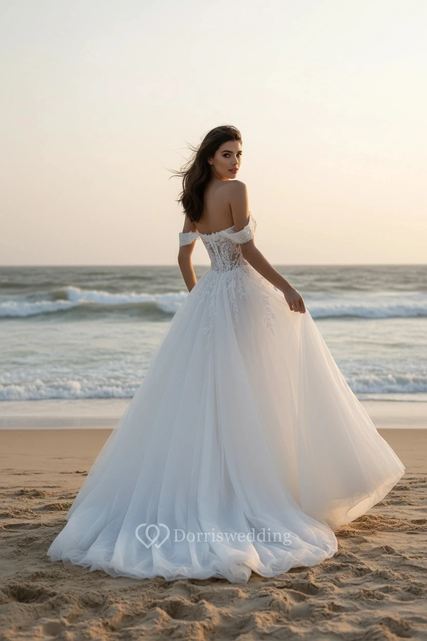 Boho Off-the-Shoulder A-line Wedding Dress with Train