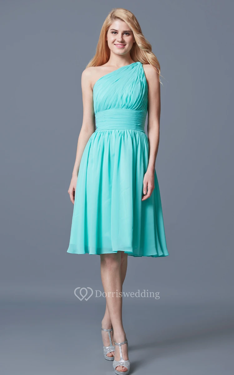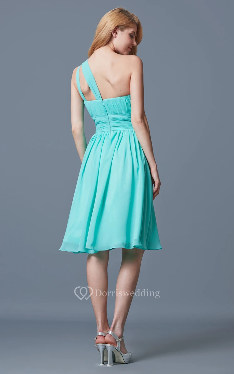 Boho One Shoulder Ruched A-line Short Chiffon Dress
