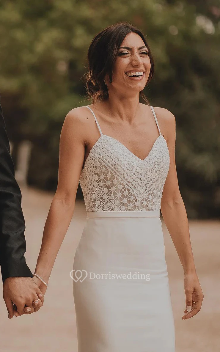 Boho Spaghetti Empire Sheath Simple Wedding Dress with Lace Top