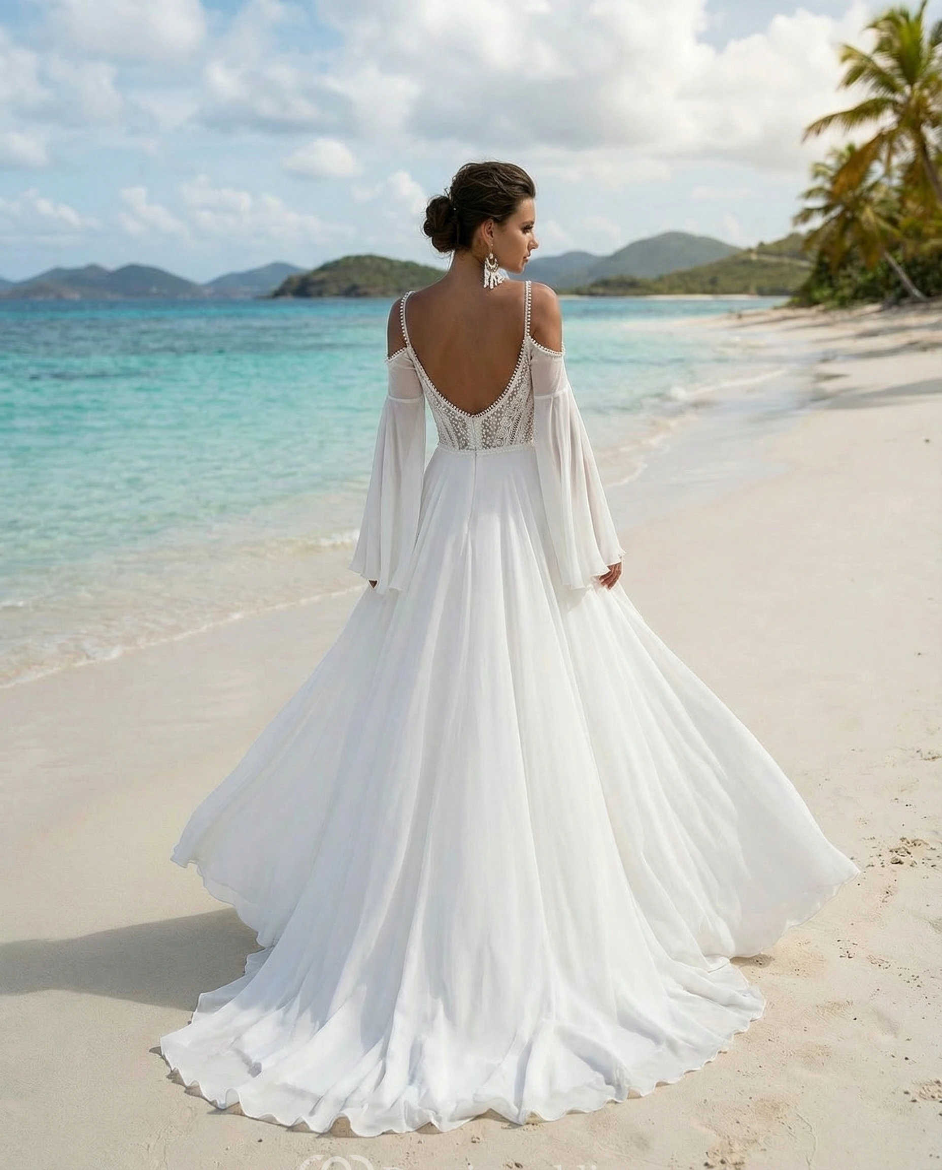 Boho Spaghetti Strap Chiffon Beach Wedding Gown