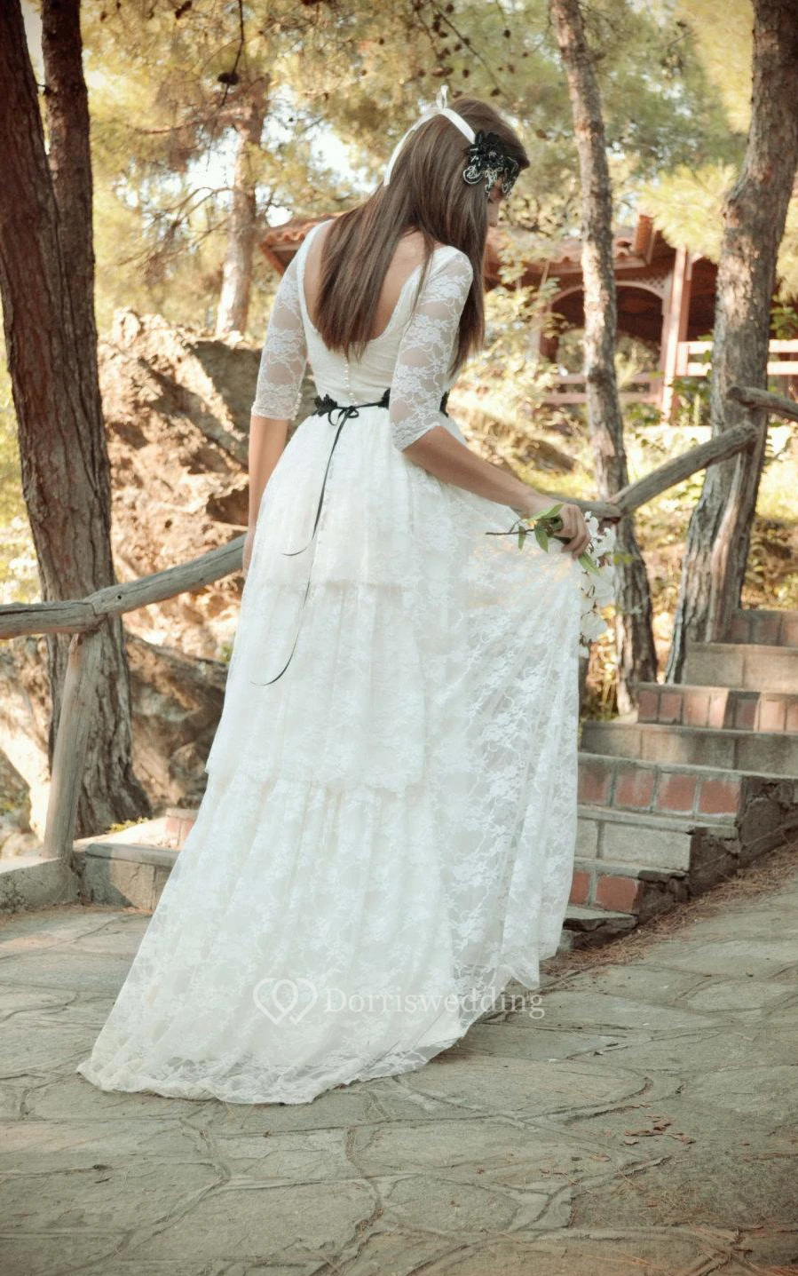 Bohemian Half Sleeve Floor-Length Lace Dress