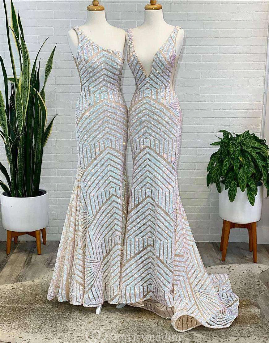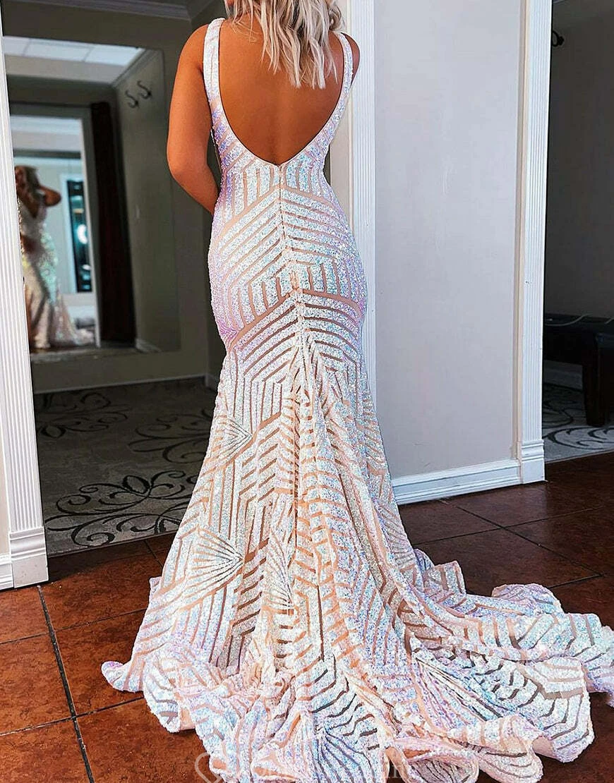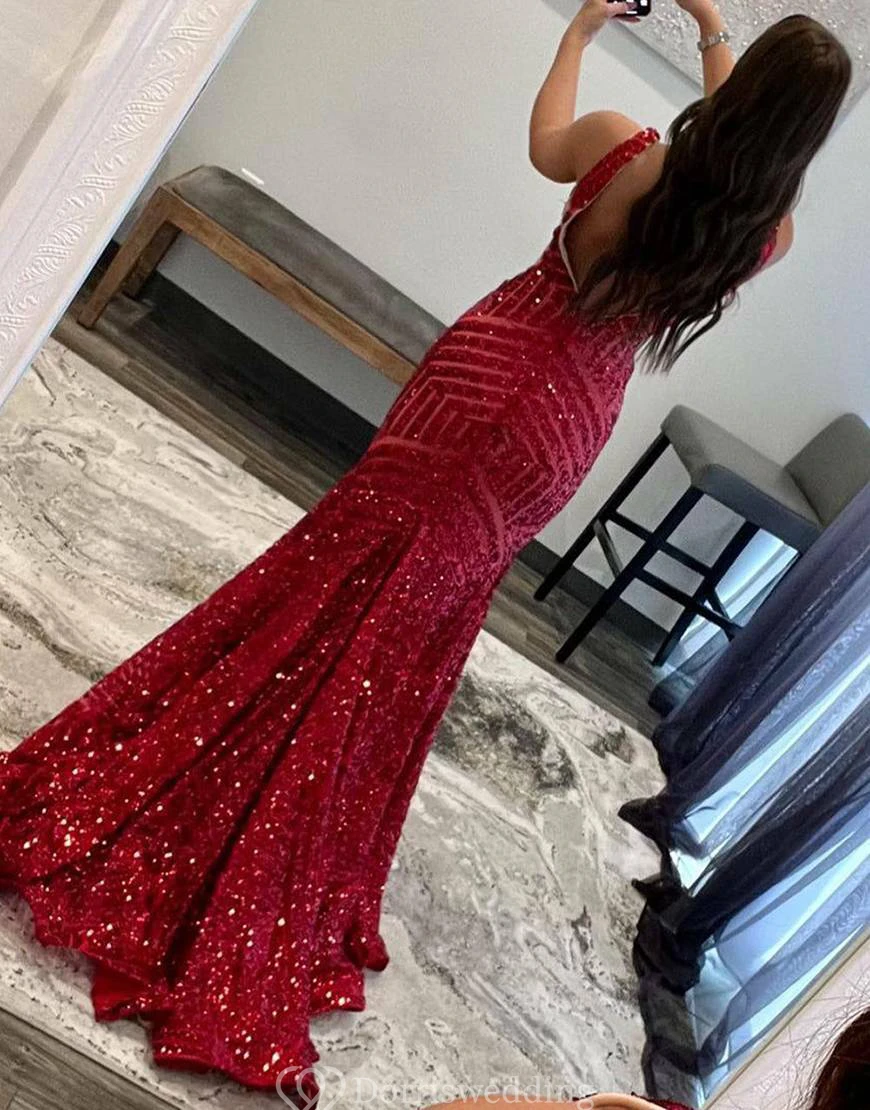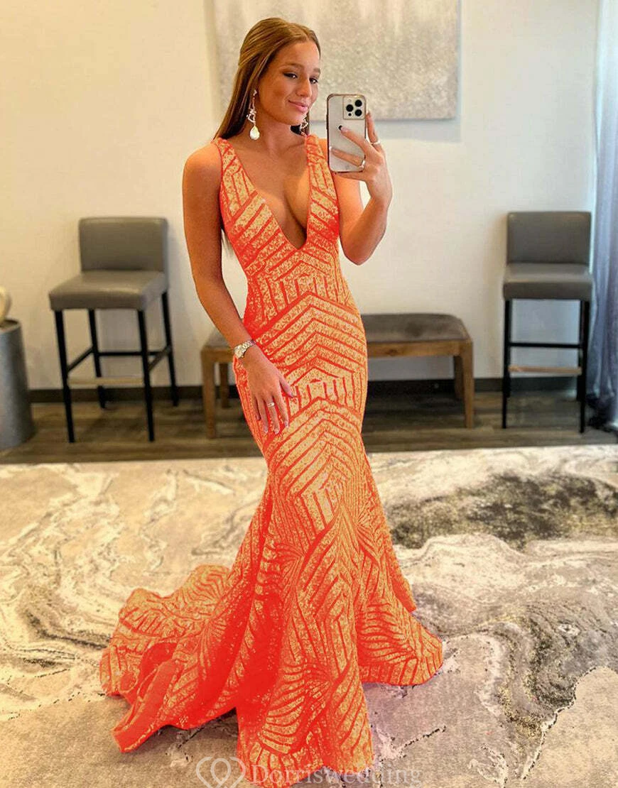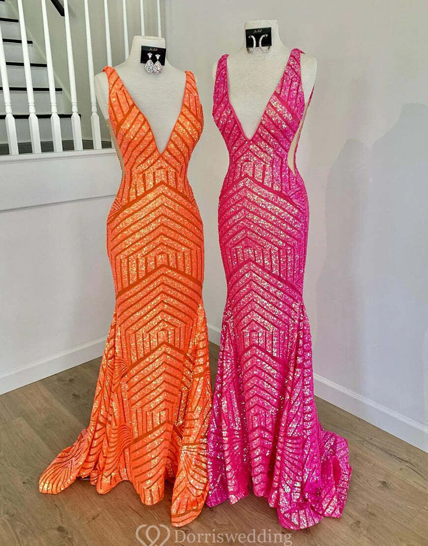 Make a statement in this bright pink sequin mermaid gown featuring a bold geometric pattern. The deep V-neckline and figure-hugging silhouette exude confidence, perfect for prom or any glamorous event. ✨ Features: Hot Pink Sequins, Mermaid Silhouette, Deep V-Neck, Bold Geometric Pattern, Floor-Length Hem.