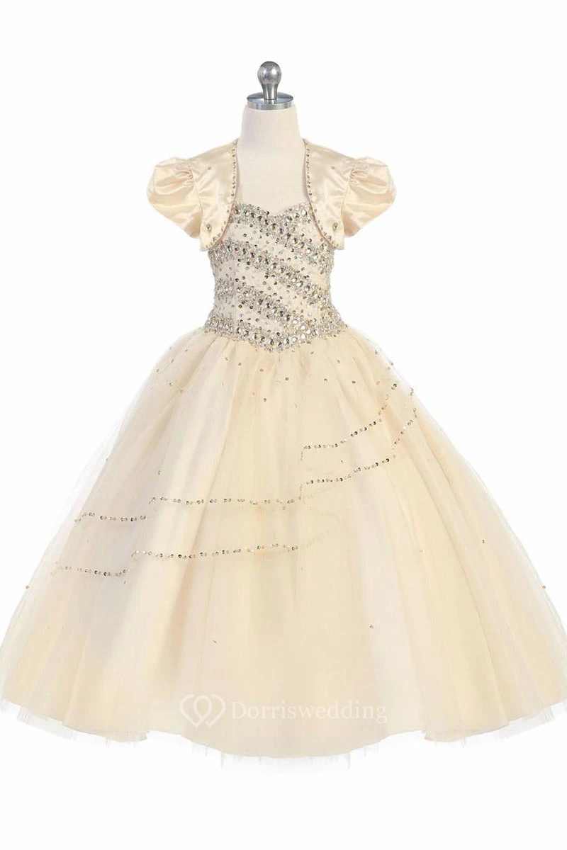 Bolero Beaded Tiered Tulle&Lace Flower Girl Dress