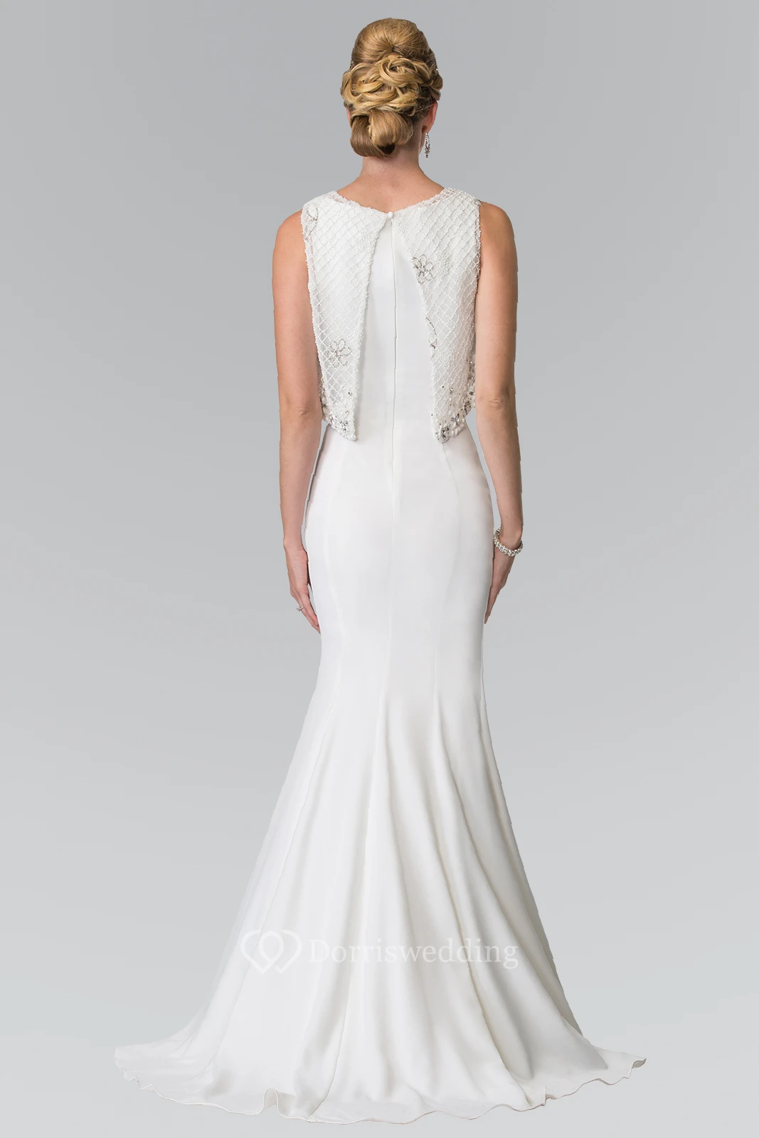 Bolero Sheath Long Scoop-Neck Sleeveless Jersey Dress With Beading