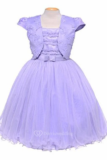 Bolero Short Bowed Tulle&Satin Flower Girl Dress With Embroidery