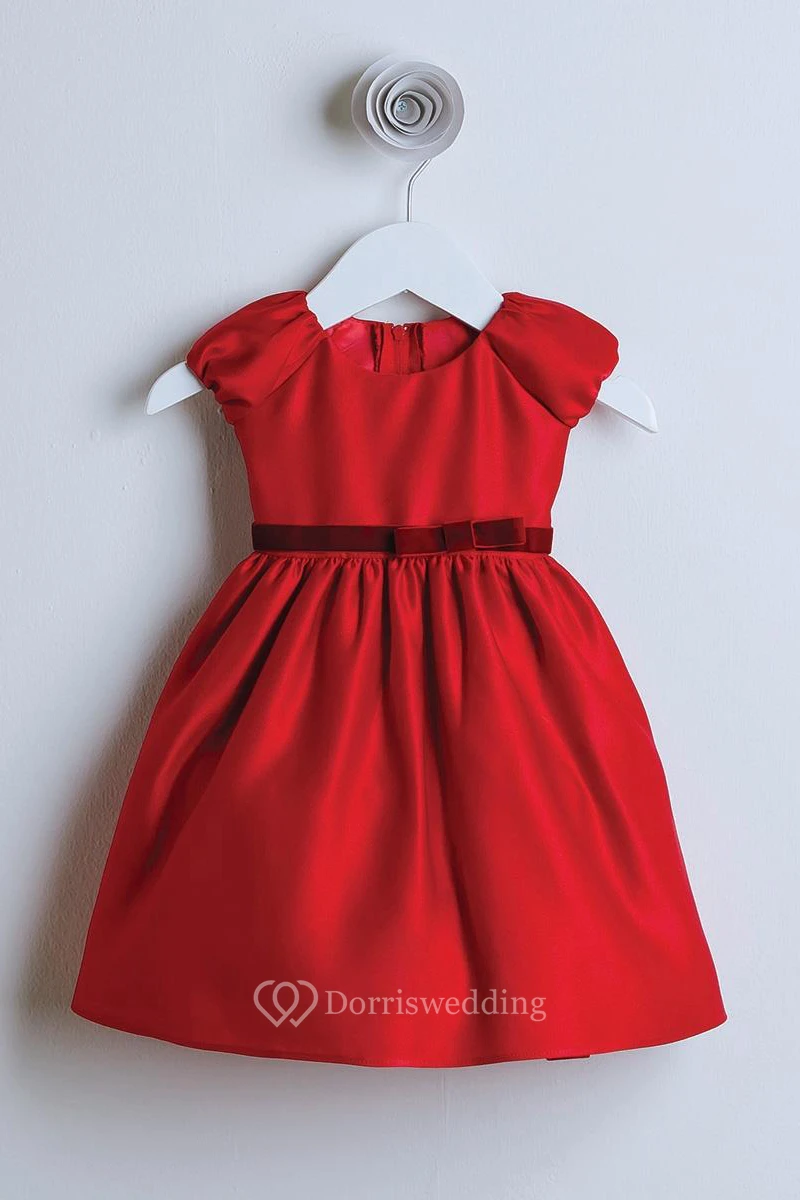 Bowed Cap-Sleeve Satin Flower Girl Dress