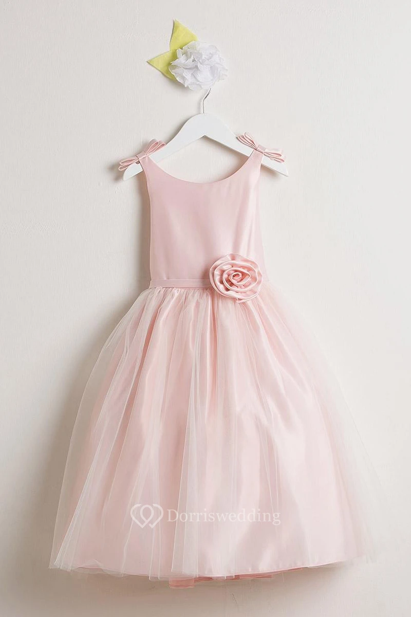 Bowed Sleeveless Tulle&Satin Flower Girl Dress
