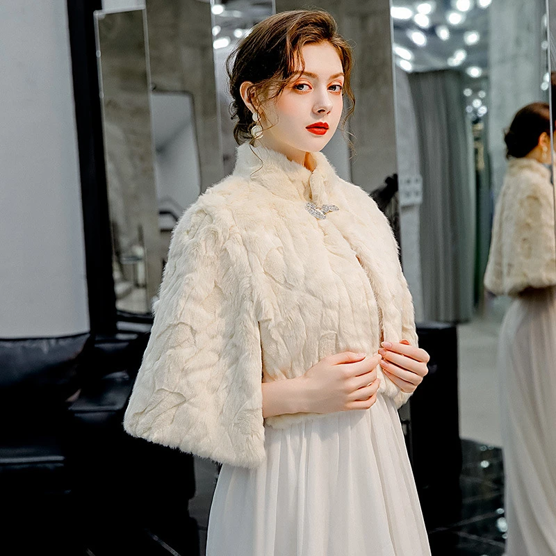 Bridal Wedding Dress New Spring Wool Cape Thick Warm Cheongsam Dress Bridesmaid Cape Outer Wear Cape