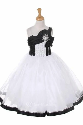 Broach Tea-Length Bowed Tiered Sequins&Organza Flower Girl Dress With Sash