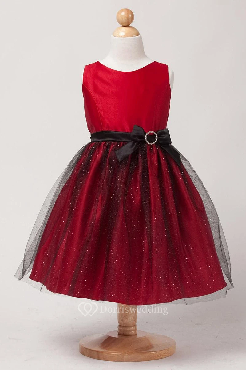 Broach Tiered Bowed Satin Flower Girl Dress With Sash