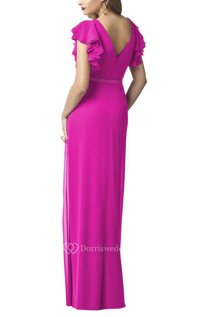 Butterfly Sleeves V-neck Chiffon Long Dress