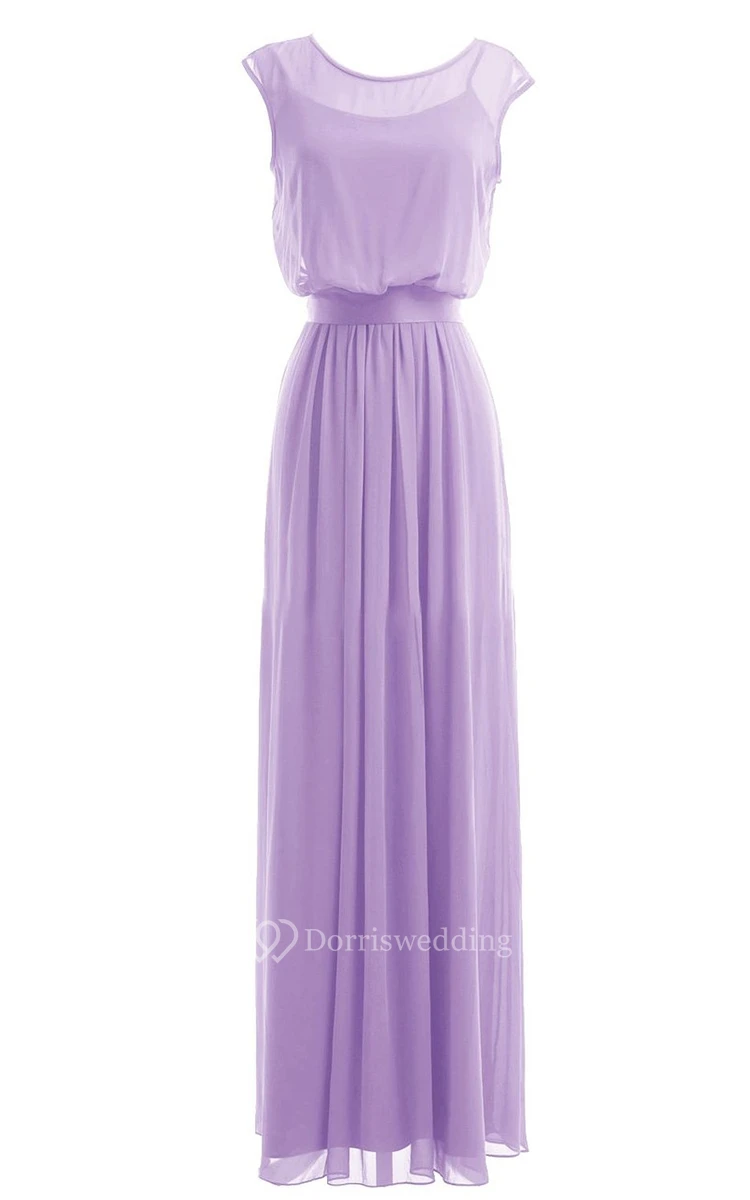 Cap-sleeve A-line Dress With Keyhole Back and Sash