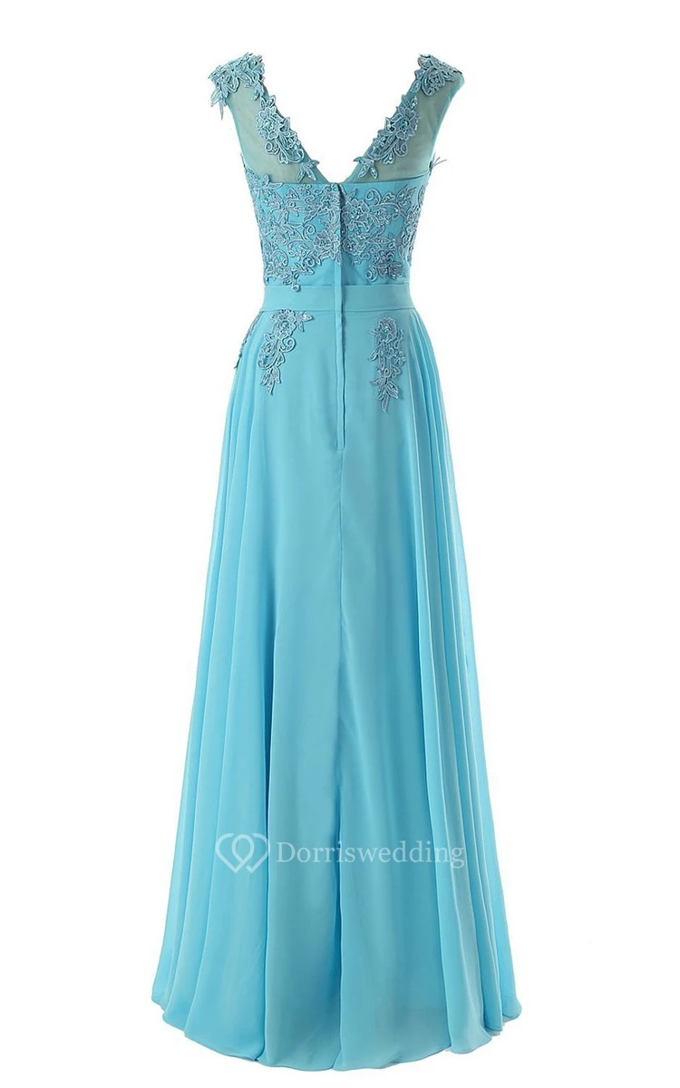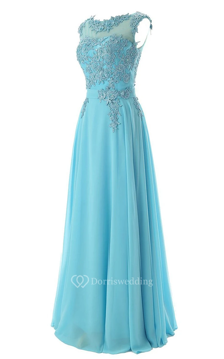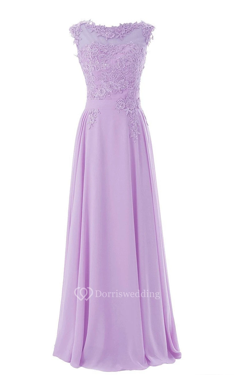 Cap-sleeve Bateau Neck A-line Dress With Lace Appliques