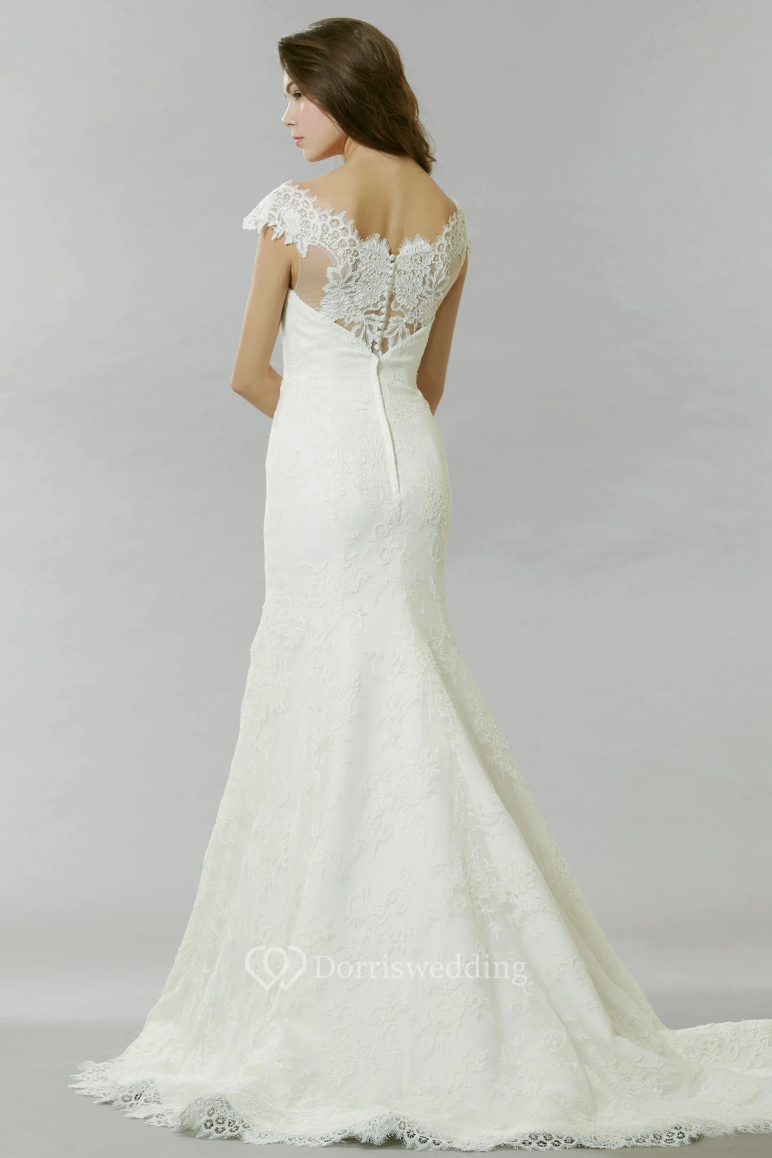 Cap Sleeve Bateau Neck Appliqued Lace Wedding Dress With Court Train