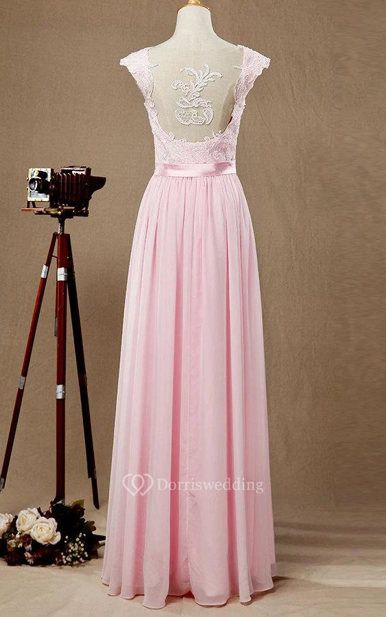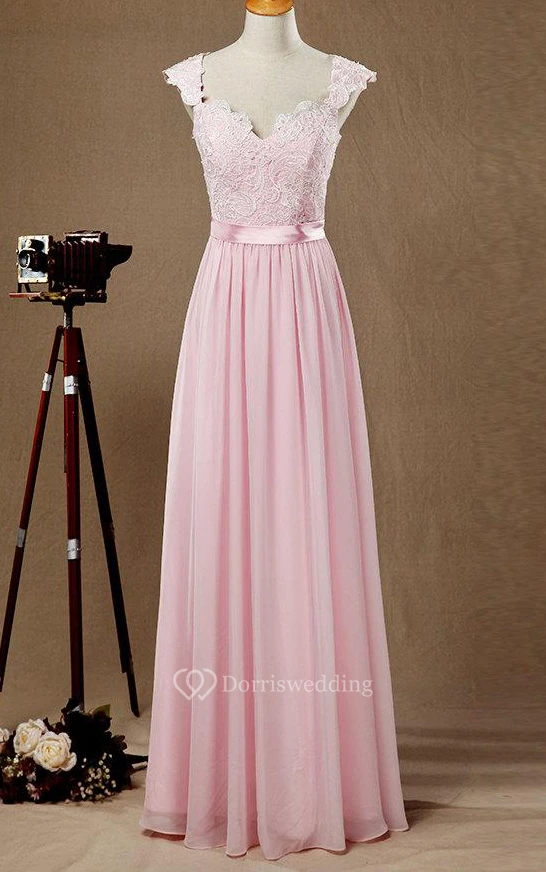 Cap Sleeve Chiffon&Lace&Satin Dress