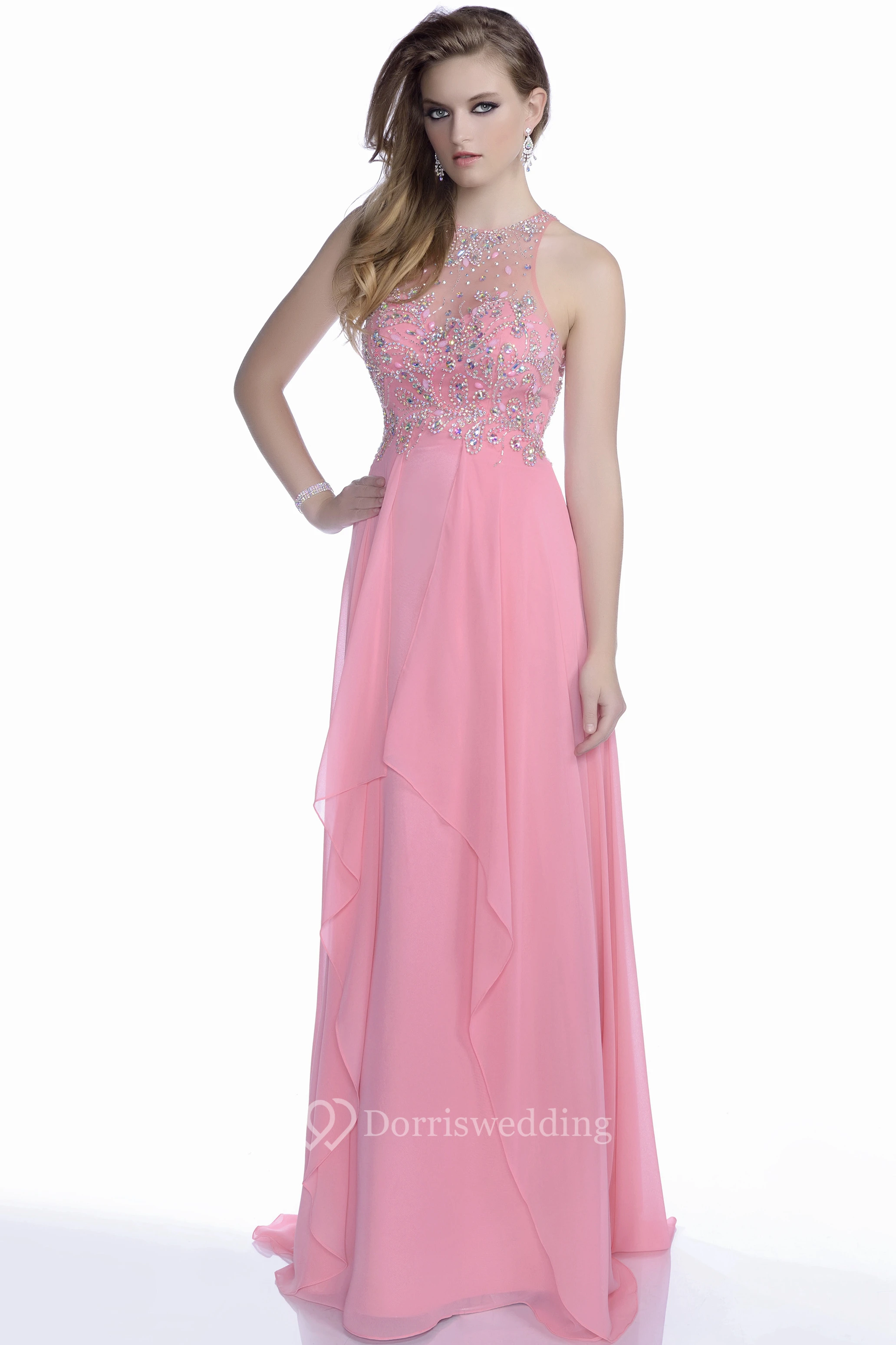 Cap Sleeve Chiffon A-Line Prom Dress With Beaded Bodice And Draping