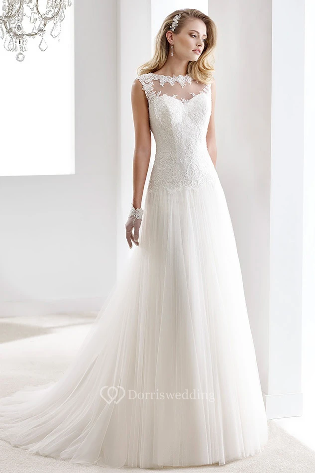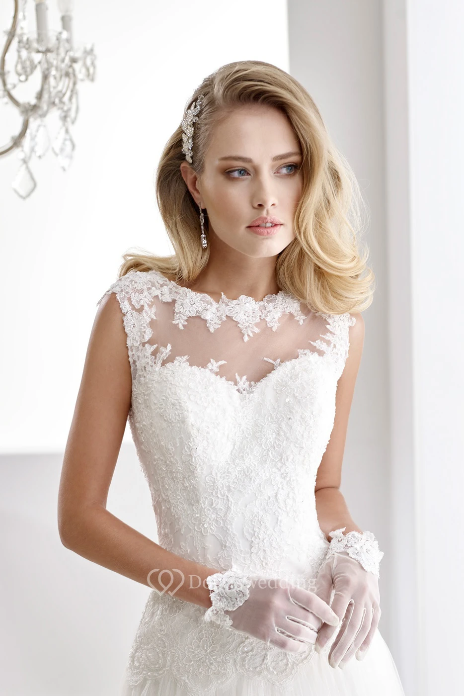 Cap Sleeve Draping Chiffon Gown With Lace Bodice And Illusive Neckline