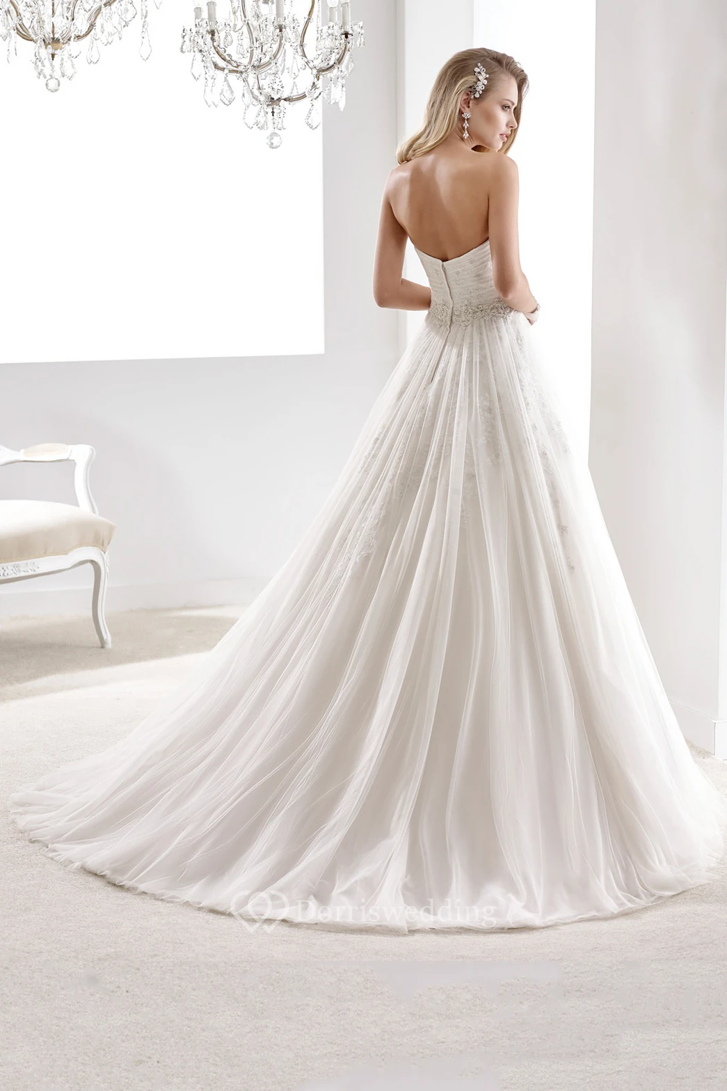 Cap sleeve Illusion Lace Wedding Gown with Open Back and Back Detachable Train