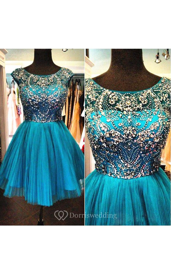 Cap Sleeve Jewel Neck Short Tulle Dress With Beading