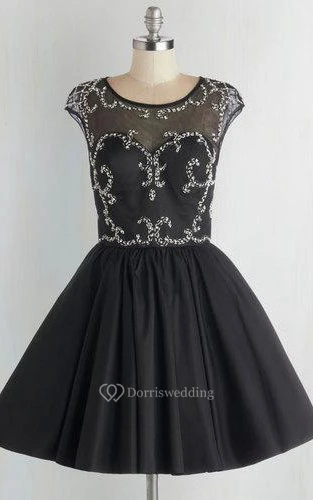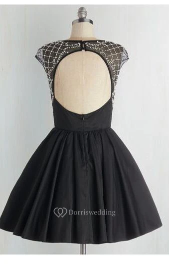Cap Sleeve Jeweled Short Open Back Chiffon Dress